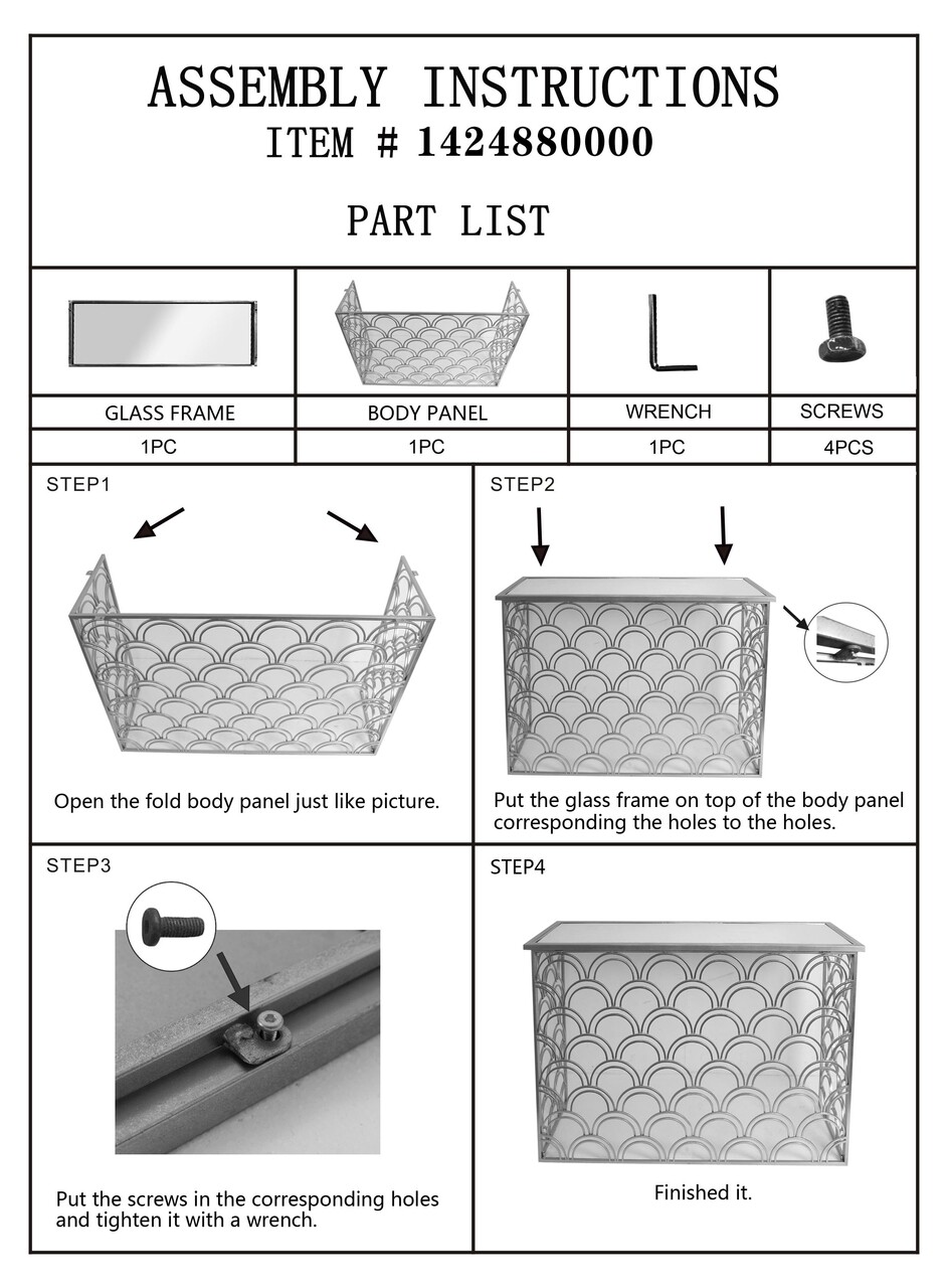 Compozitie material: fier, MDF, blat din sticla marmorata
