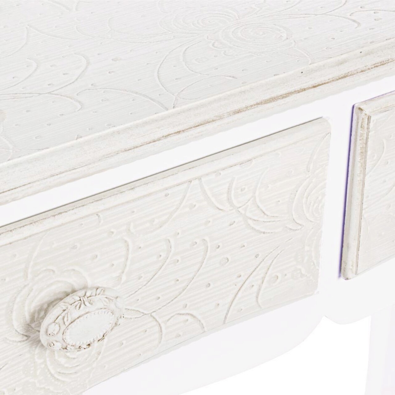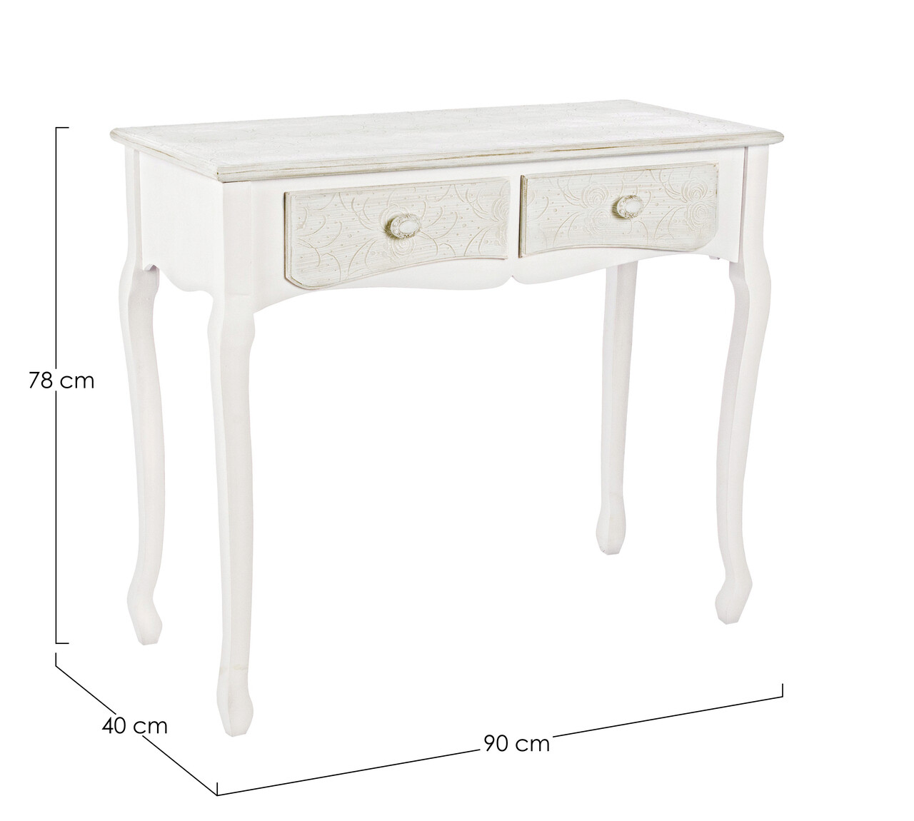 MentiuniCompozitie: MDF. Rafturi si fronturi cu motive florale incrustate.Finisaj cu vopsea mata pe baza de apa. Manere din polirasina.Necesita asamblare.