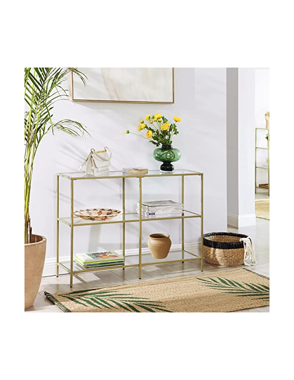 Consola din sticla securizata, Vasagle, 3 rafturi, 100 x 30 x 73, LGT27G, Auriu