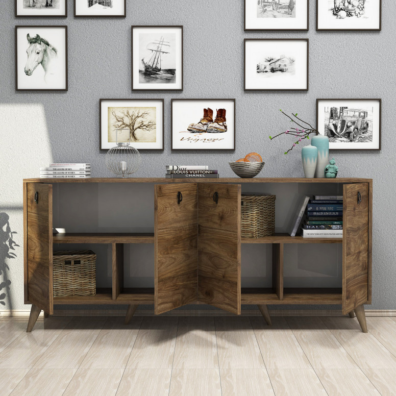 PAL Melaminat Grosime: 18 mm Dimensiune: Latime: 180 cm Inaltime: 80 cm Adâncime: 45 cm Rafturi numeroase Poate fi fixat pe perete Ambalaj – Numar pachete: 3 Size: 180 x 50 x 7 cm / 29,0 kg (1 Piesa) Size: 70 x 50 x 16 cm / 25,0 kg (1 Piesa) Size: 30 x 21 x 13 cm / 1,1 kg (1 Piesa)