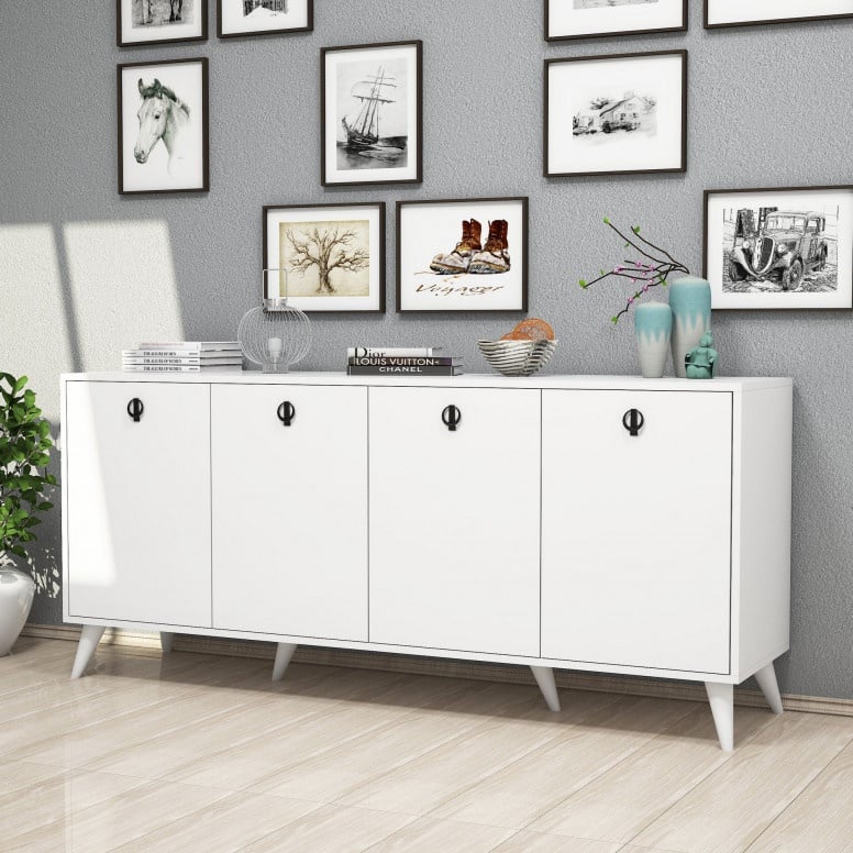 PAL Melaminat Grosime: 18 mm Dimensiune: Latime: 180 cm Inaltime: 80 cm Adâncime: 45 cm Rafturi numeroase Poate fi fixat pe perete Ambalaj – Numar pachete: 3 Size: 180 x 50 x 7 cm / 29,0 kg (1 Piesa) Size: 70 x 50 x 16 cm / 25,0 kg (1 Piesa) Size: 30 x 21 x 13 cm / 1,1 kg (1 Piesa)