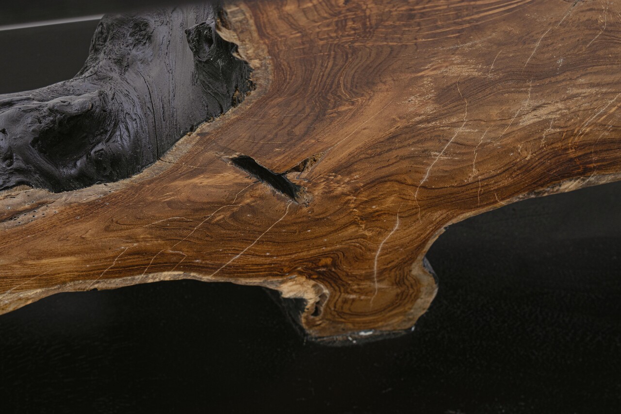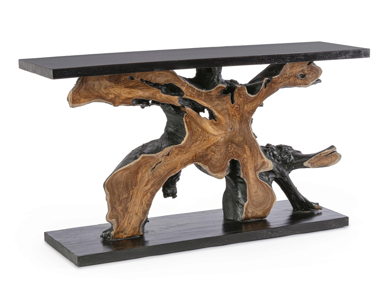 Cadru interior din radacini naturale de lemn de tec. Cadru exterior din lemn de suar. Finisaj cu nitroceluloza. Formele originale formate din lemn sunt doar orientative, toate articolele vor fi diferite unele de altele, cu dimensiuni usor diferite.