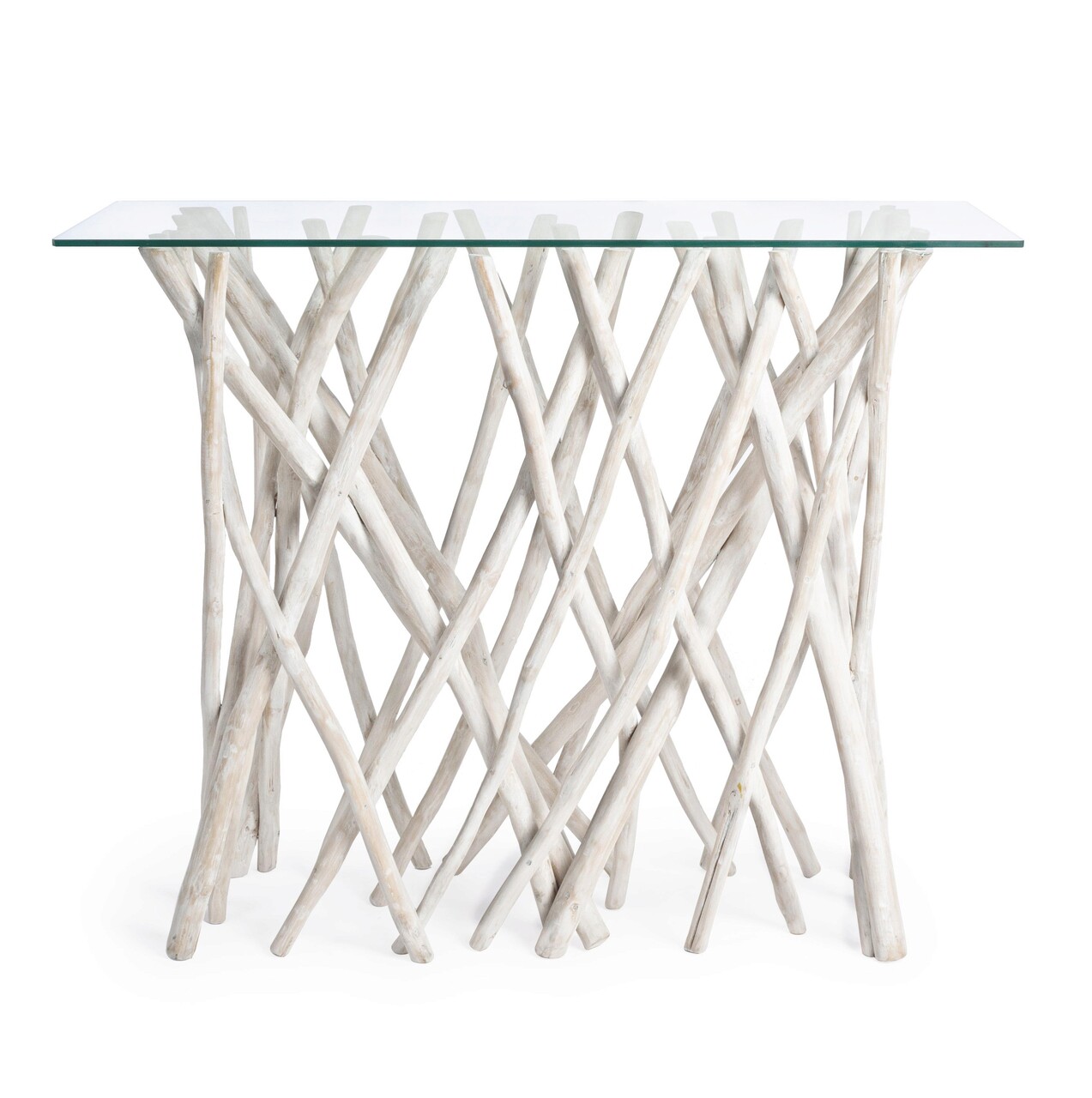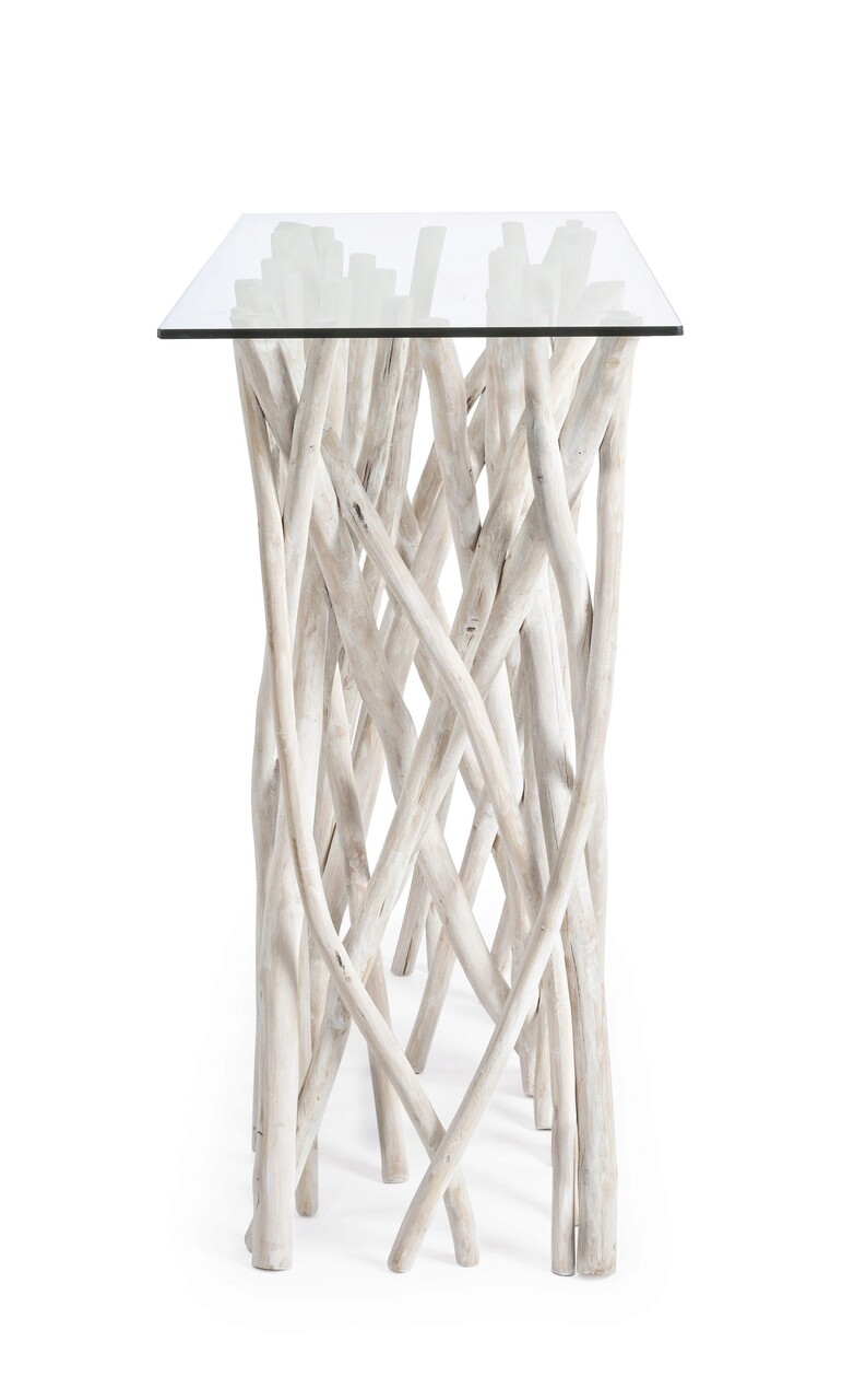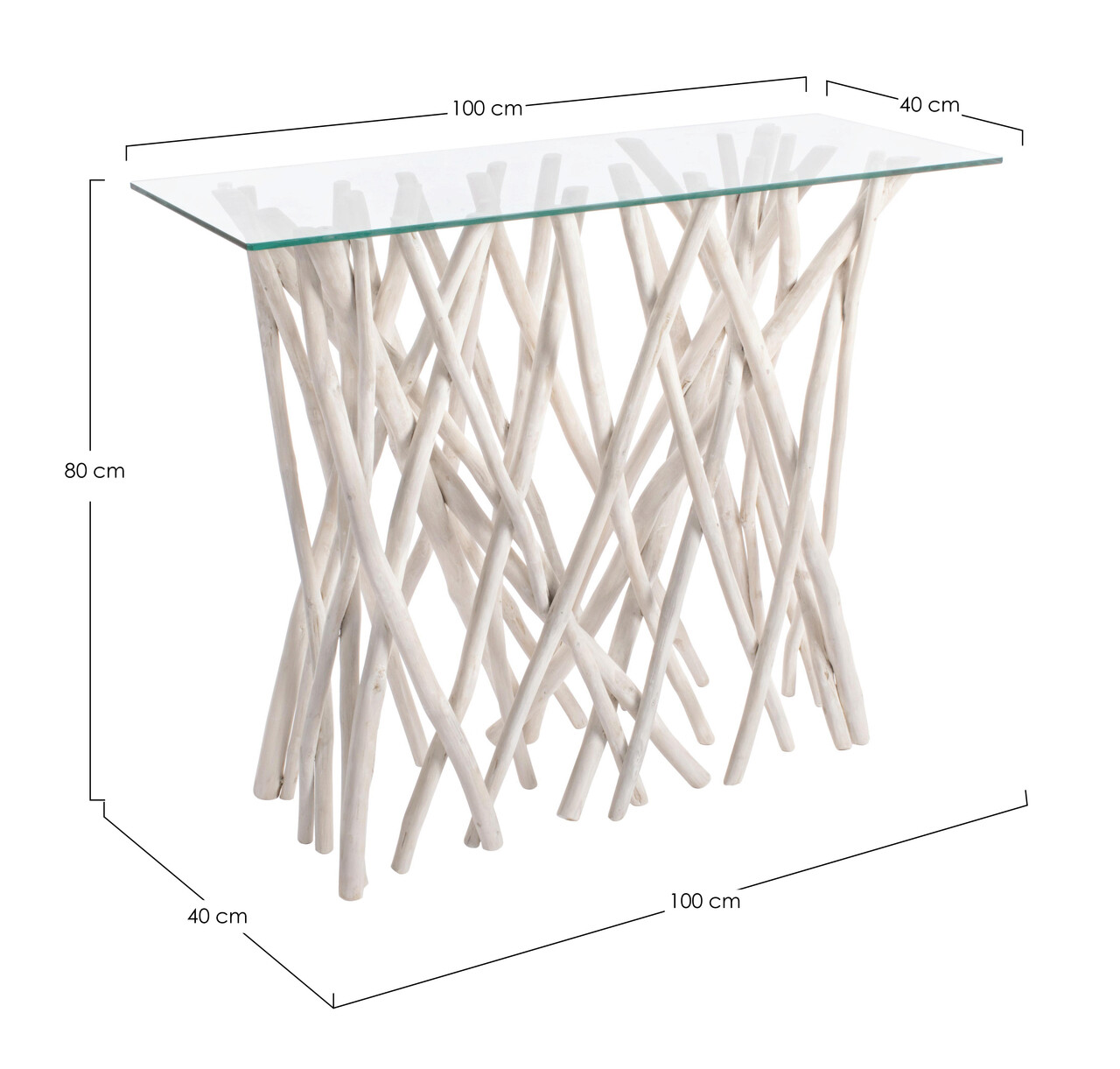 MentiuniRamuri de tec cu efect prespalat (White Wash).Finisaj cu vopsea de baza nitrocelulozica.Blat din sticla 8 mm.Numai pentru utilizare in interior.