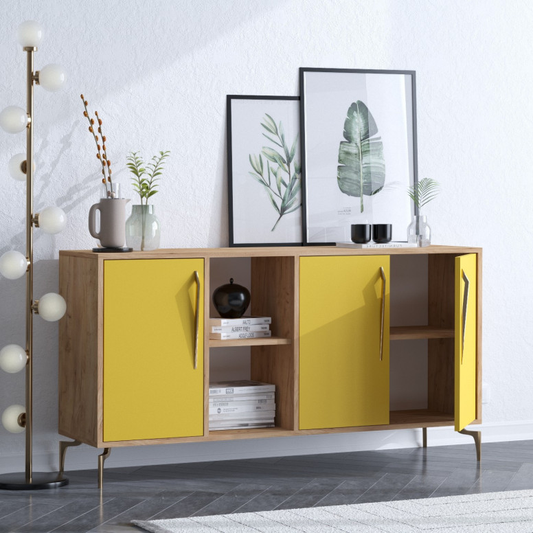 PAL Laminat 100% Grosime: 18 mm Picioare de Metal Maner de Metal Lungime: 140 cm Inaltime: 86 cm Adancime: 40 cm Picior Inaltime: 15 cm Rafturi Numeroase Poate fi fixat pe perete Numar de Pachete: 1