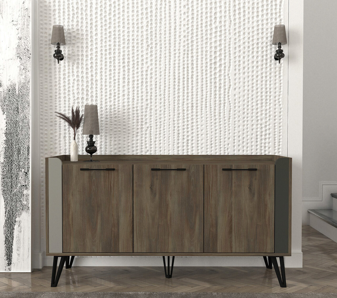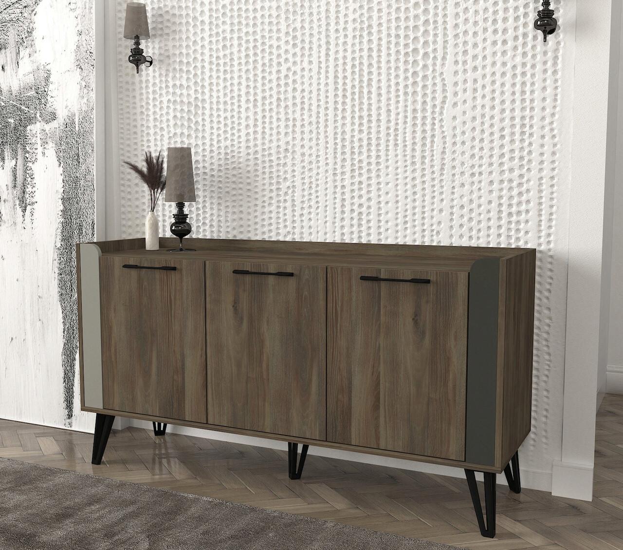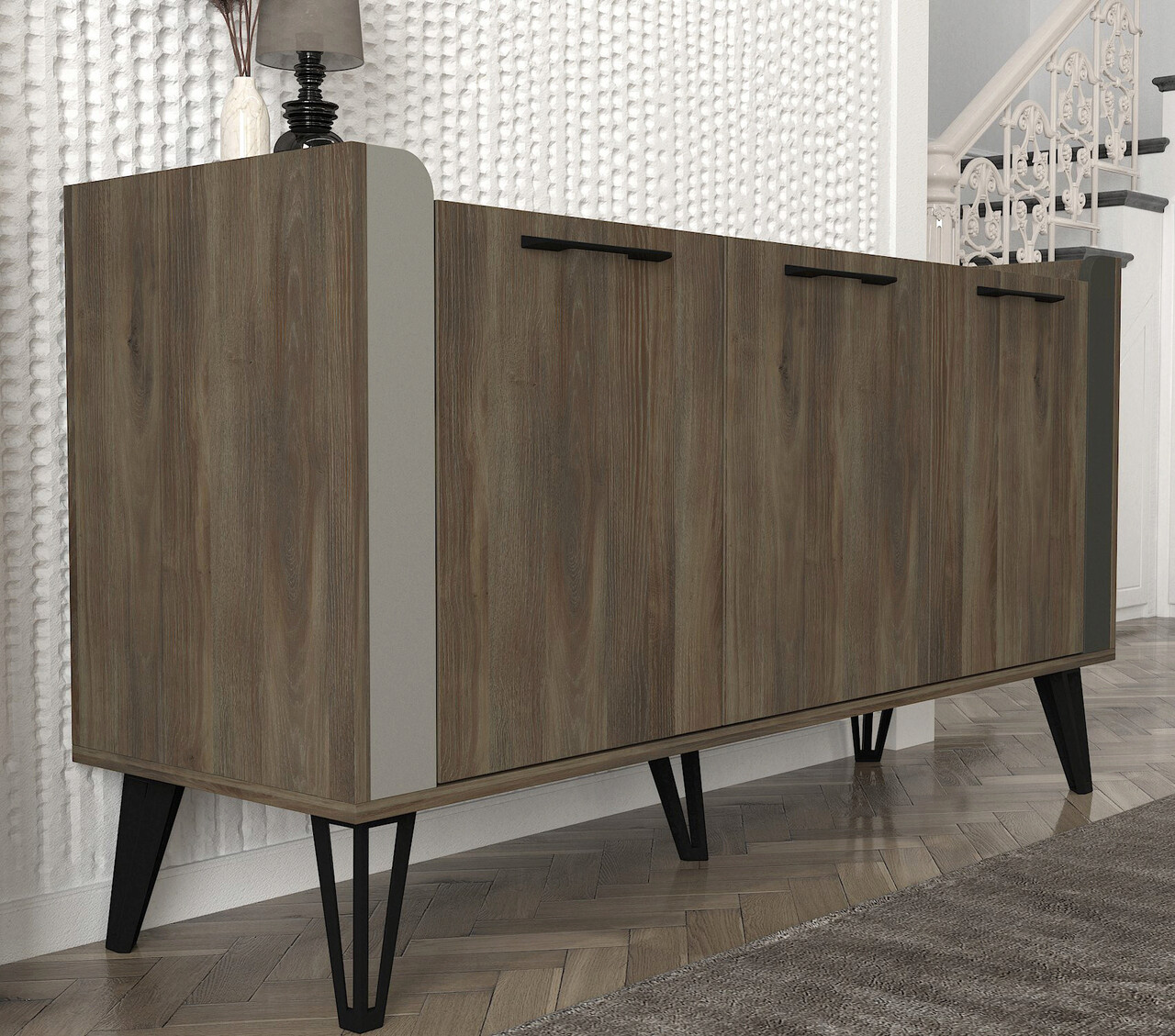Grosime: 18 mmPicioare metaliceLatime: 150 cm Inaltime: 80 cm Adancime: 45 cmRafturi numeroasePoate fi fixat pe pereteSpatiu de depozitare suplimentar