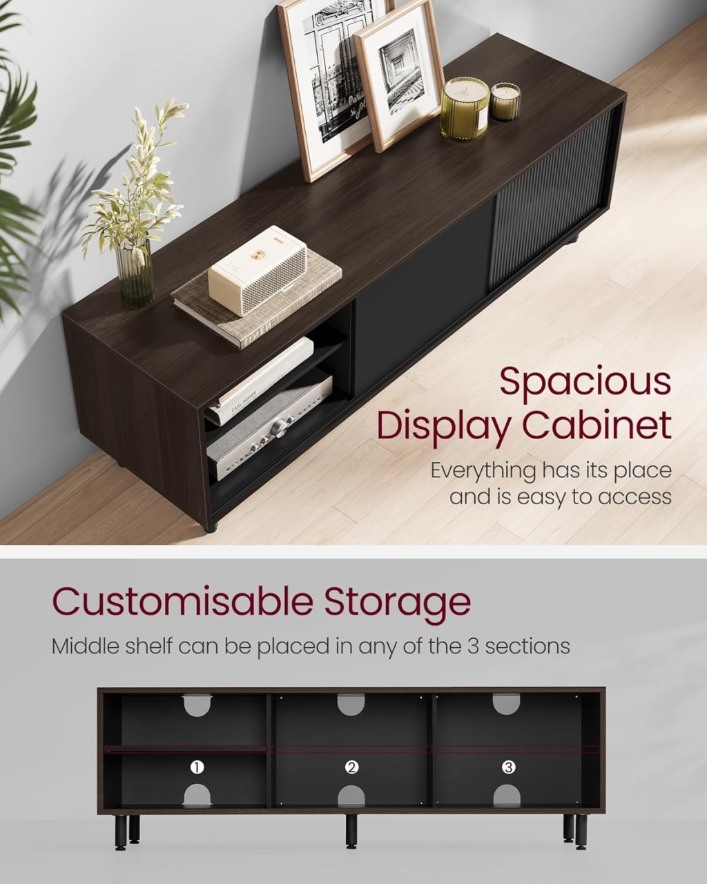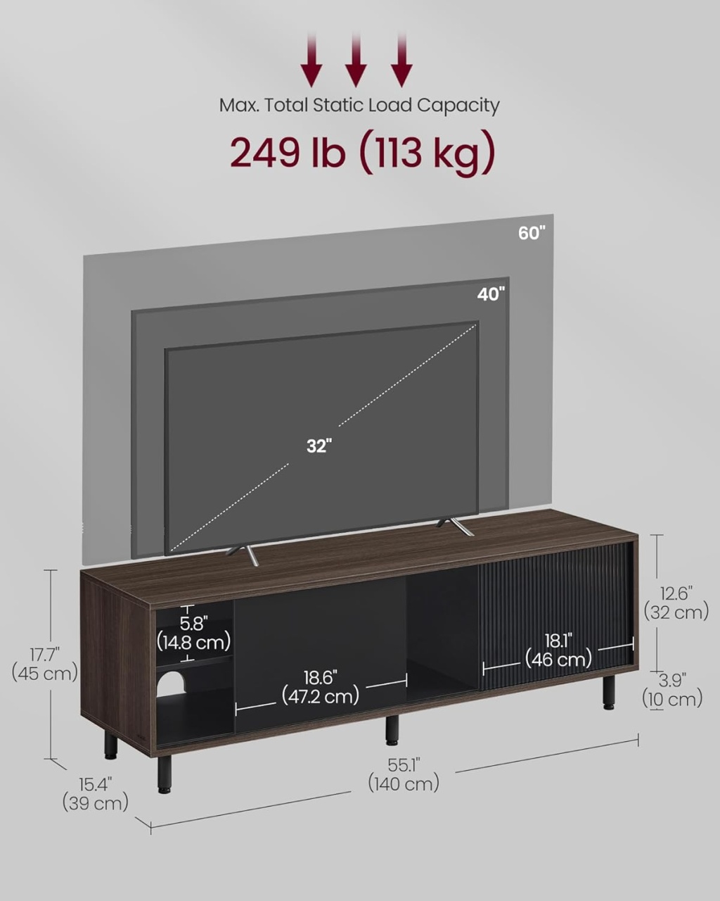 Consola TV Vasagle Maro 140x39x45 cm Descoperiți eleganța și funcționalitatea cu Consola TV Vasagle , un element esențial pentru orice living modern. Cu un design contemporan, această consolă este perfectă pentru televizoare de până la 152 cm (60 inch), aducând un aer chic și sofisticat în spațiul dumneavoastră de relaxare. Asamblare Rapidă și Fără Unelte Nu mai pierdeți timp cu asamblarea complicată! Consola TV Vasagle se montează în aproximativ 10 minute , fără a necesita unelte. Datorită conectorilor interlocking integrați, panourile se unesc cu ușurință, eliminând nevoia de a jongla cu diverse accesorii. Stabilitate și Durabilitate Construită cu un sistem interconectat sigur și realizată din lemn aglomerat de calitate și picioare din oțel, această consolă TV oferă o stabilitate superioară, având o capacitate de încărcare de până la 113 kg . Este alegerea ideală pentru a susține toate echipamentele dumneavoastră media. Design Modern și Inviting Îmbinând nuanțele de maro deschis și negru cerneală , această unitate TV aduce un vibe modern și relaxat. Sticla cu model canelat adaugă o notă de eleganță, creând un spațiu de divertisment primitor și plăcut. Spațios și Ajustabil Ușile glisante permit expunerea sau ascunderea accesoriilor media, în timp ce sticla canelată oferă un stocaj estetic și intim. Raftul din mijloc poate fi poziționat în oricare dintre cele 3 secțiuni, conform preferințelor dumneavoastră. Compatibilitate cu Televizoare de Diverse Dimensiuni Cu dimensiunile de 140 x 39 x 45 cm , această consolă este compatibilă cu televizoare de 81 cm (32 inch), 114 cm (45 inch), 127 cm (50 inch), 140 cm (55 inch) și până la 152 cm (60 inch), făcând-o o alegere versatilă pentru orice cameră de divertisment. Detalii Tehnice Culoare: Maro deschis, Negru cerneală Material: Lemn PAL, Lemn MDF, Sticlă, Oțel Dimensiune produs: 140 x 39 x 45 cm Greutate produs: 21.7 kg Capacitate maximă de încărcare statică: 113 kg Dimensiune pachet: 154.5 x 48.5 x 11.5 cm Ce conține pachetul? 1 x Consola TV 1 x Kit anti-răsturnare 1 x Kit de accesorii 1 x Instrucțiuni (Manual + Ghid pe o pagină) Îmbunătățiți-vă spațiul de divertisment! Nu ratați ocazia de a adăuga această Consolă TV Vasagle în casa dumneavoastră. Comandați acum și transformați-vă livingul într-un spațiu modern și primitor!