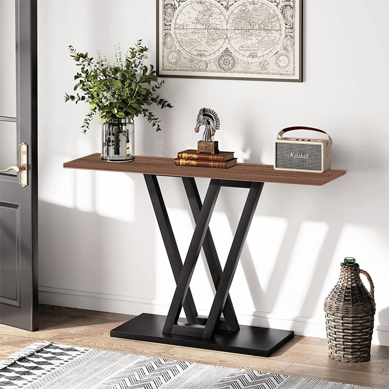 Consola Wirmo, culoarea nuc meamine – picior metalic negru 110x30x80cm