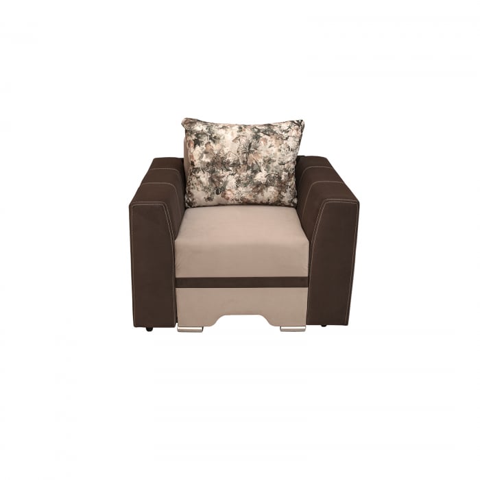 Fotoliu ALESSIA cu arcuri, maro + bej, 104x92x82 cm
