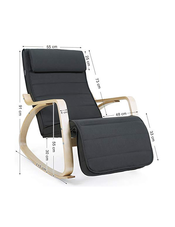 •Specificatii: •Material: Lemn Burete •Dimensiunea totala: 55 x 80 x 91 cm (W x D x H) •Adâncimea scaunului: 48 cm •Latimea scaunului: 55 cm •Pachetul contine:1 x balansoar 1 x Instrucțiuni (EN, DE, FR, IT, ES)