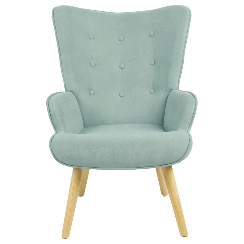 Fotoliu Fluffy material textil verde lila – culoare lemn natural 75x69x96cm