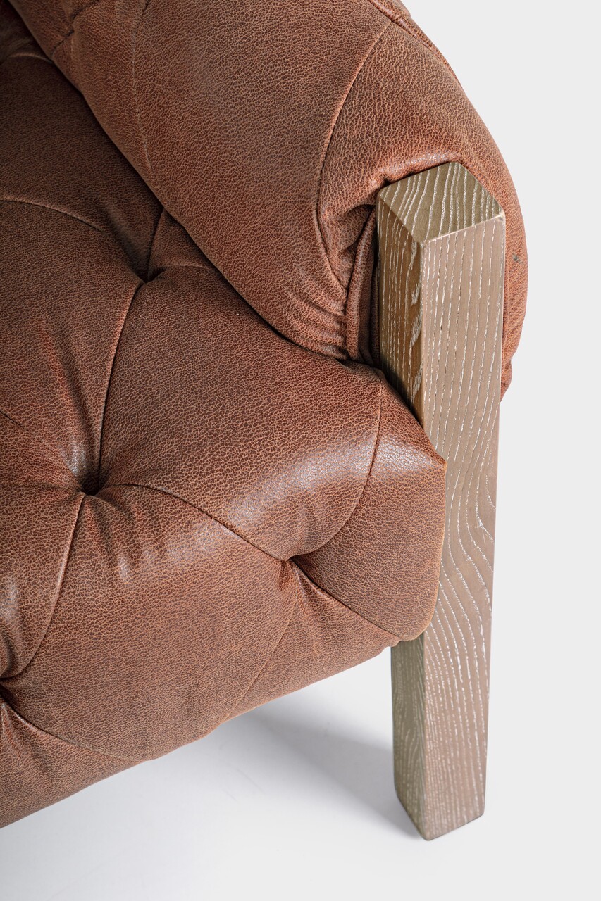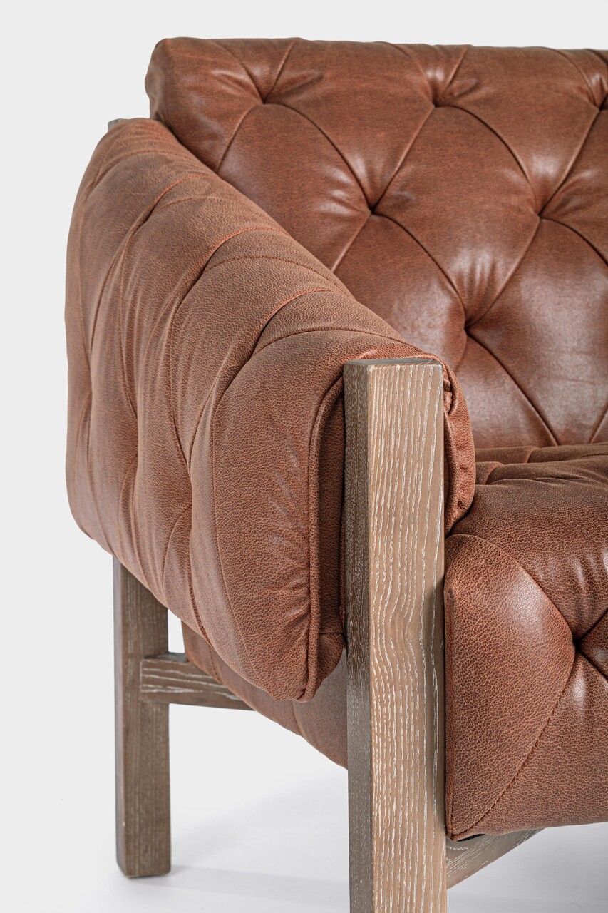 MentiuniCadru din lemn de frasin.Tapiterie din imitatie de piele (poliuretan).Umplutura din spuma poliuretanica. Densitate umplutura: sezut 30Kg/M3, spatar 25Kg/M3.Inaltime sezut: 44.5 cm.Inaltime brate: 60 cm.
