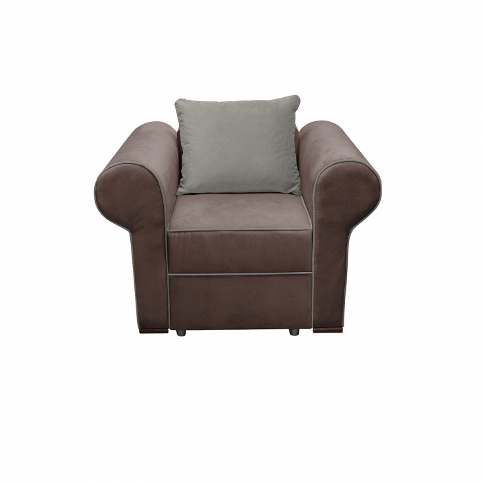 Dimensiuni gabarit fotoliu: Lungime: 115 cm Adancime:100 cm Inaltime: 75 cm Inaltime sezut: 50 cm Caracteristici: Design elegant. Sezut confortabil datorita plasei de arcuri tip Bonnel Picioare ornamentale din PVC Cheder…