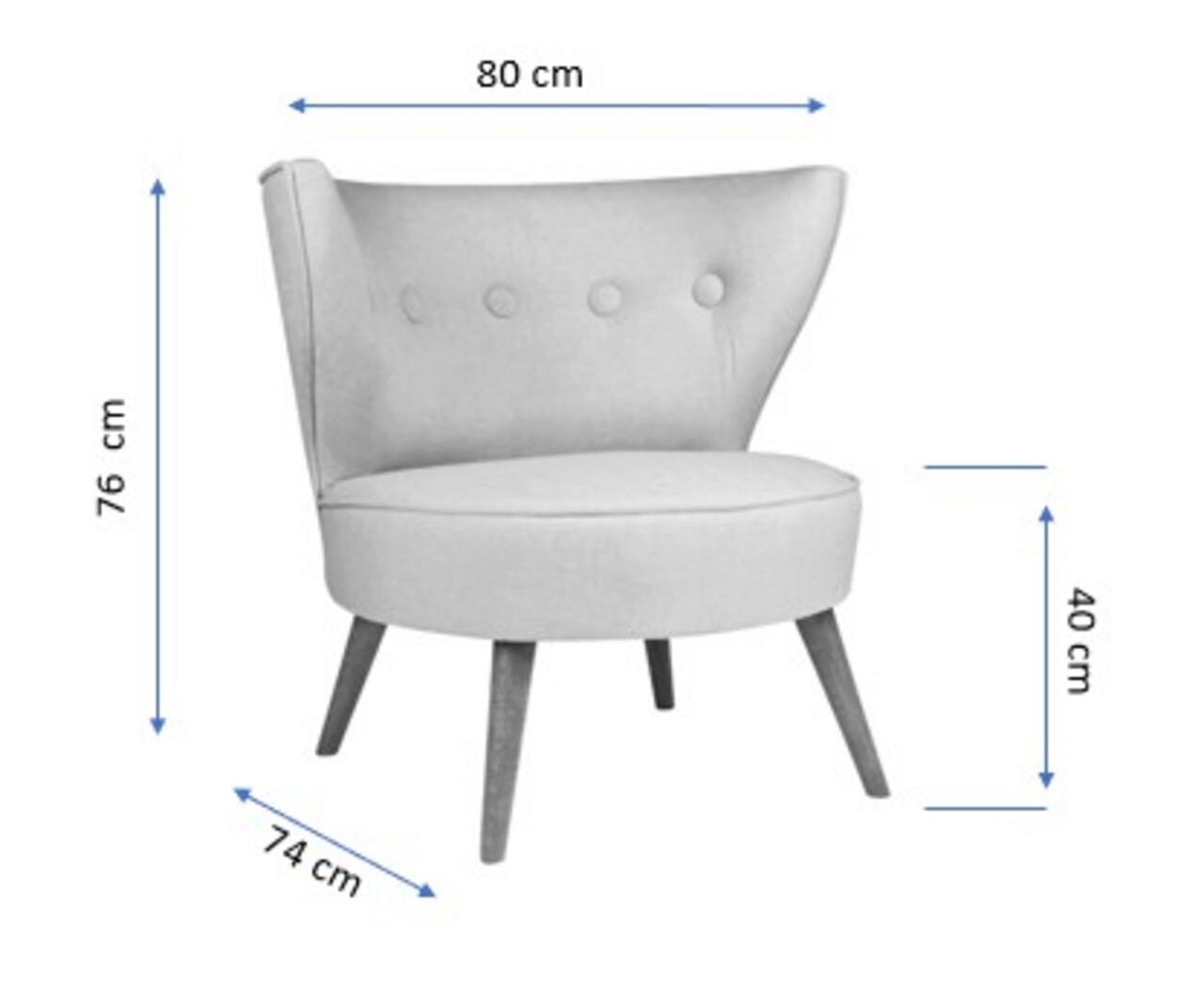 Tesatura: Poliester32 Spumă DNS pentru sezutLatime: 80 cm Inaltime: 76 cm Adancime: 74 cmInaltime sezut: 40 cmTesatura usor de curatatPicioare din lemnNu este extensibil