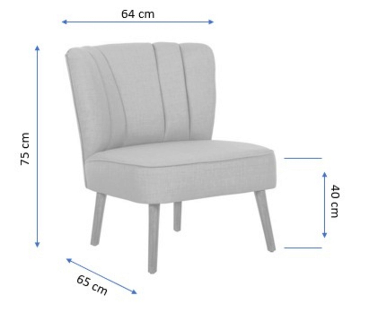 Tesatura: Poliester32 Spumă DNS pentru sezutLatime: 64 cm Inaltime: 75 cm Adancime: 65 cmInaltime sezut: 40 cmTesatura usor de curatatPicioare din lemnNu este extensibil