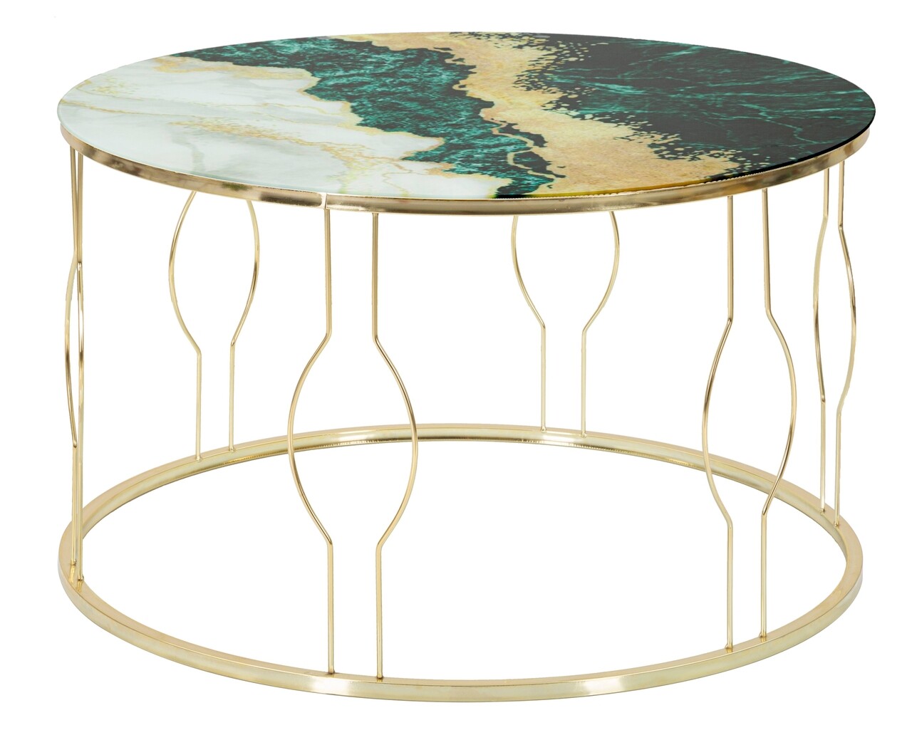 Masuta de cafea Greeny, Mauro Ferretti, Ø 75×48 cm, fier/sticla, auriu