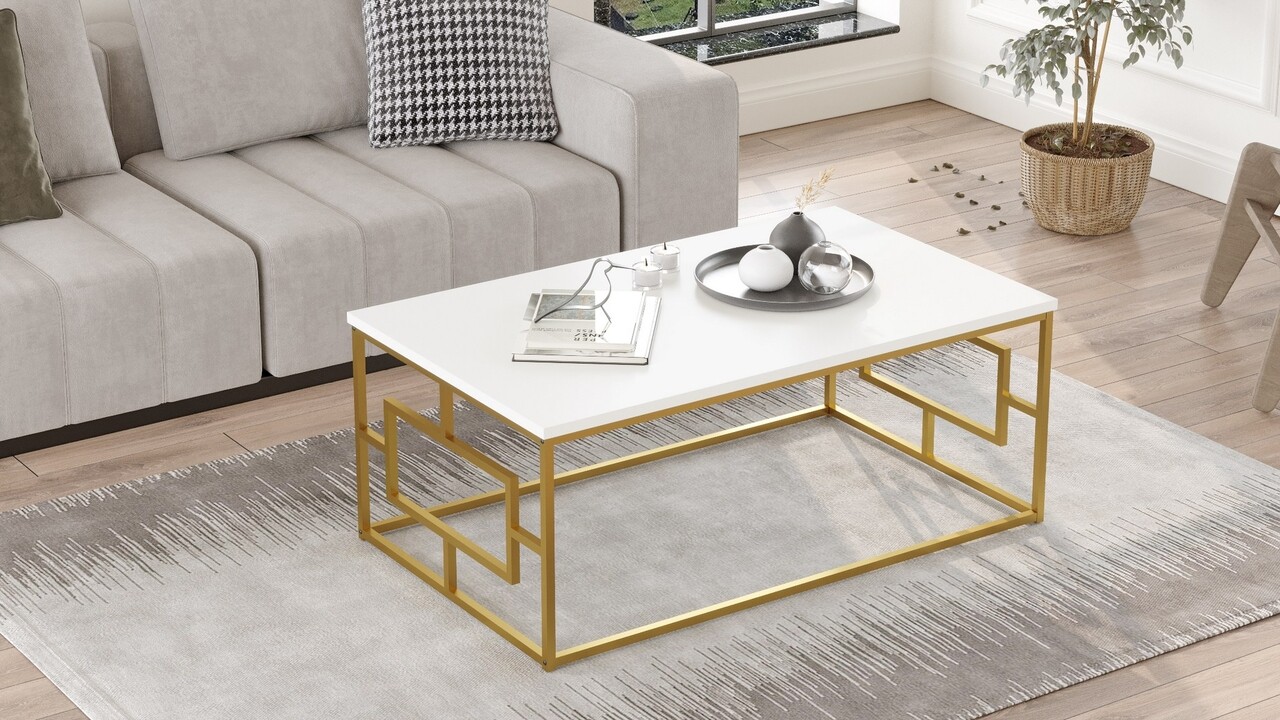 Masuta de cafea, Locelso, VG12-W, 100 x 40 x 60 cm, pal melaminat, alb/auriu