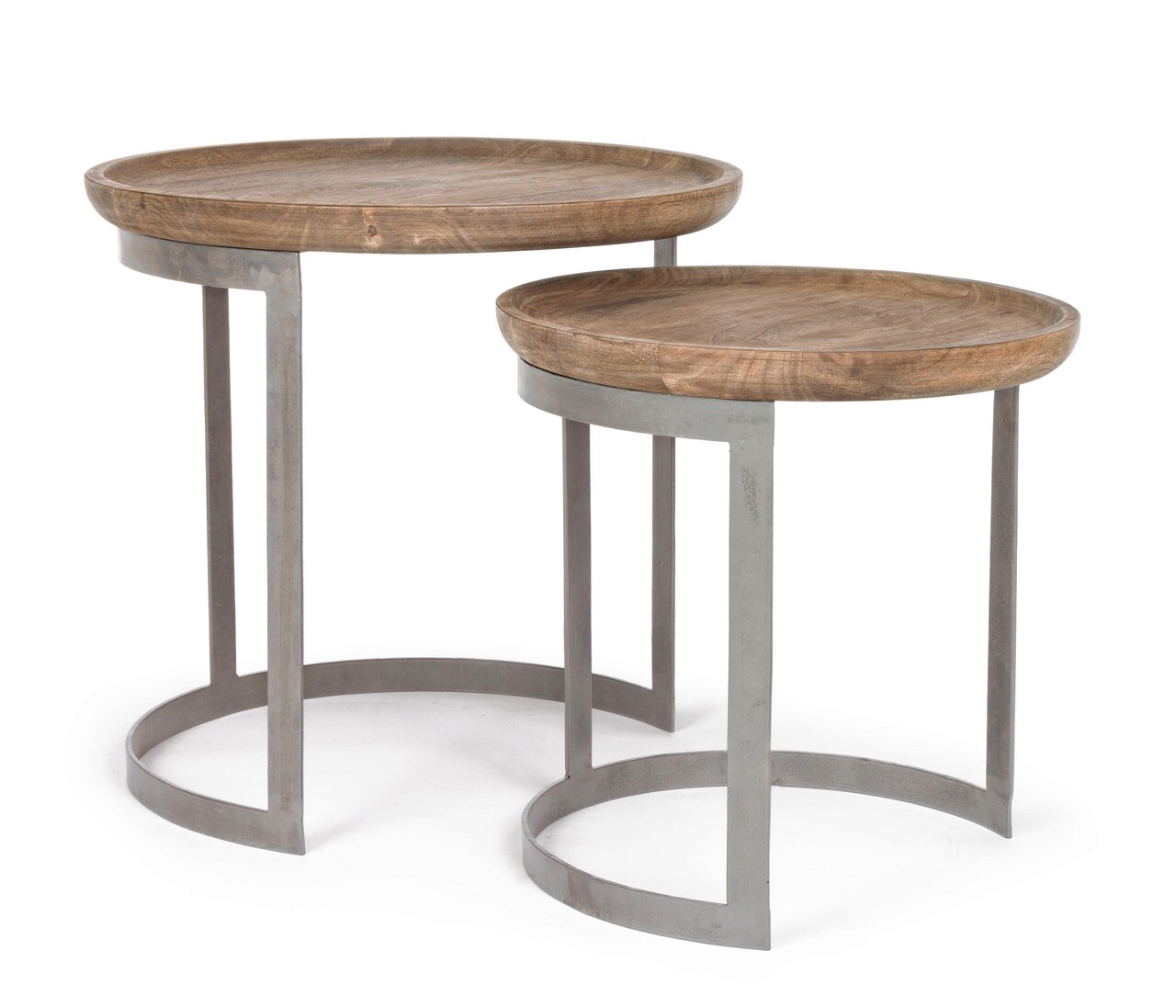 Set 2 masute de cafea Narvik Round, Bizzotto, Ø53 x 51 cm, otel/lemn de mango
