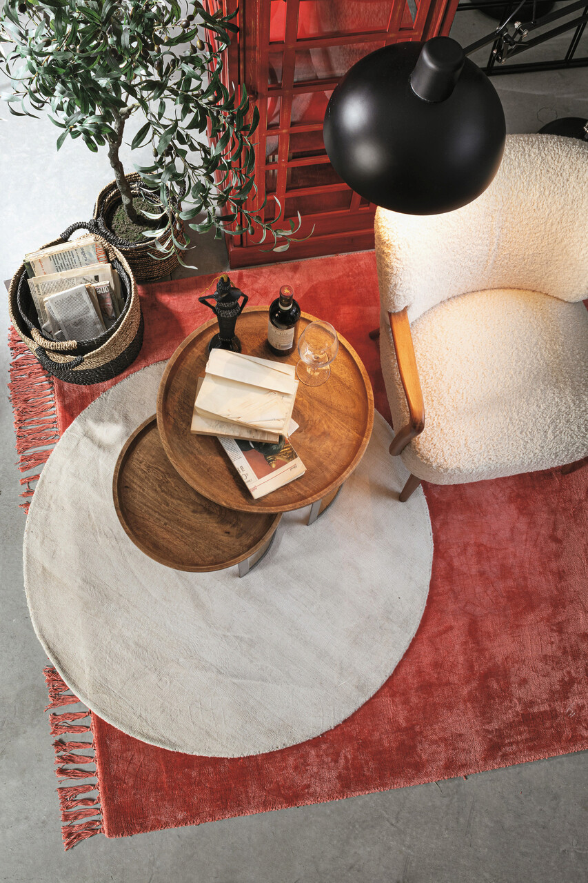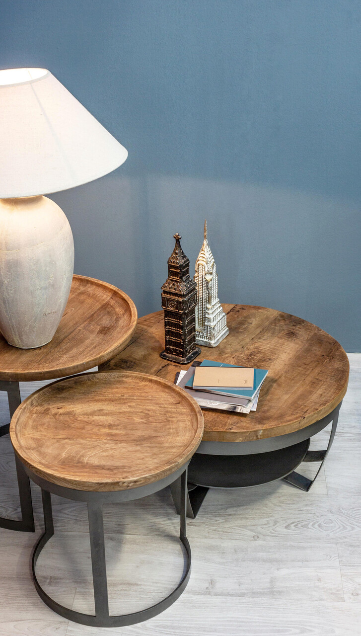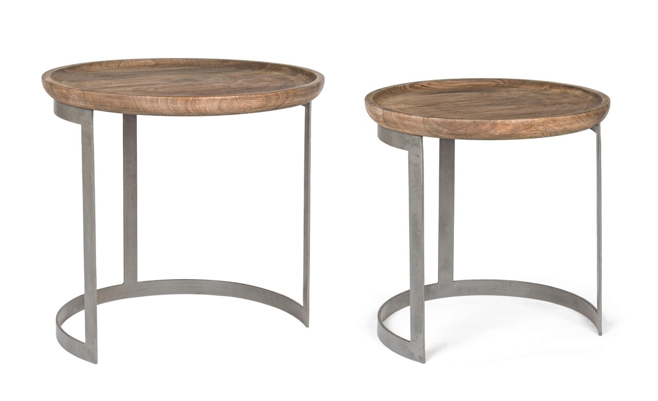 <p><strong>Mentiuni</strong><br />Cadru din otel acoperit cu pulbere epoxidica.<br />Blat din lemn de mango cu finisaj cu vopsea pe baza de apa.</p> <p><strong>Set</strong><br />1 masuta de cafea cu dimensiunile Ø43 x 43 cm.<br />1 masuta de cafea cu dimensiunile Ø53 x 51 cm.</p>