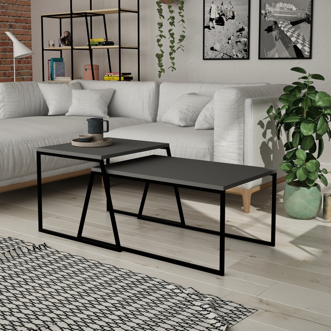 <p><b>Set</b><br>1 masa cu dimensiunea de 88x50x38 cm si 1 masa cu dimensiunea de 57x55x45 cm</p>