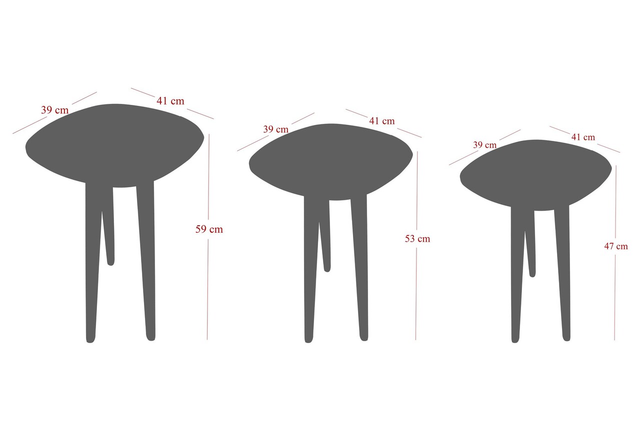 <p>Setul este format din:<br />Masuta: Lungime: 41 cm; Latime: 39 cm; Inaltime: 47 cm.<br />Masuta: Lungime: 41 cm; Latime: 39 cm; Inaltime: 53 cm.<br />Masuta: Lungime: 41 cm; Latime: 39 cm; Inaltime: 59 cm.<br />Compozitie material: pal melaminat.</p>