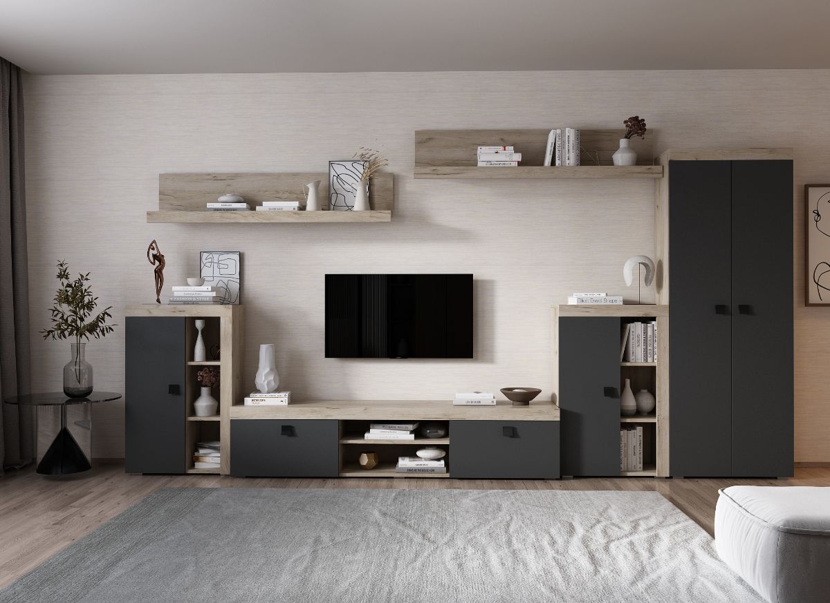 Living Ontario C6 UNO- Mobila sufragerie Living Ontario C6 UNO- Mobila sufragerie are un aspect contemporan / modern si este alcatuita din mai module. Puteti alege direct din configuratiile realizate de noi sau daca doriti puteti creea singuri propria configuratie de living combinand din corpurile de mobila pentru living. In functie de spatiul unde doriti sa amplasati mobila puteti adapta livingul. Livrare gratuita si rapida, 4-10 zile lucratoare prin flota proprie Suntem producatori de mobilier, fara intermediari Toate piesele de mobilier au o garantie de 2 ani Corpurile sunt construite din PAL melaminat de 16mm cu finisaj gri antracit si stejar k02 , cel din urma avand o textura similara lemnului, care creeaza un contrast rafinat si un ambient placut. Cantul aplicat este unul de 0,6 care le permite muchiilor sa fie placute la atingere . Dimensiuni Living Ontario C6 UNO- Mobila sufragerie Imaginea alaturata prezinta compartimentarea pentru mobila de sufragerie Ontario. Aceasta configuratie are 6 corpuri modulare , 2 suspendate si 4 pe sol. Spatii de depozitare cu usa cat si etajere si polita. Dulapul are 2 spatii de depozitare si o bara pentru haine. Poate fi folosite si pentru haine cat si pentru obiecte diverse. Dimensiuni corpuri: Comoda TV: L 180 x A 35.2 x H 39.8 cm Comoda Inalta x 2 buc: L 60 x A 30.4 x H 96.8 cm Dulap 2 usi : L 67.6 x A 30.4 x H 182 cm Polita 1390 x 2 buc : L 139 x A 21.6 x H 34.8 cm Dimensiuni totale livin L 367.6 x A 35.2 x H 200 cm Spatiul de TV: diagonala recomandata maxima 180cm/70″ Toate corpurile se pot pune pe stanga sau pe dreapta in functie de cum doriti. Nu este obligatoriu pozitionarea ca in prezentare. Ele nu sunt prinse unul de celalalt. Info si schite montaj mobila sufragerie DESCARCA SCHITA MONTAJ COMODA TV DESCARCA SCHITA MONTAJ COMODA INALTA DESCARCA SCHITA MONTAJ POLITA DESCARCA SCHITA MONTAJ DULAP Atentie! Elementele de prindere de tipul dibluri, surub sau horsurub nu sunt incluse deoarce tipul de prindere difera in functie de tipul peretelui pe care urmeaza a se monta mobilierul (beton, caramida, BCA, rigips, lemn etc). Pretul afisat nu include alte accesorii sau obiecte de decor (TV, tablouri, elemente de iluminat, covor etc.) Dimensiunile sunt exprimate in cm si pot oscila intre ± 10 mm. Produsul se livreaza demontat si este insotit de accesorii si instructiuni de asamblare.