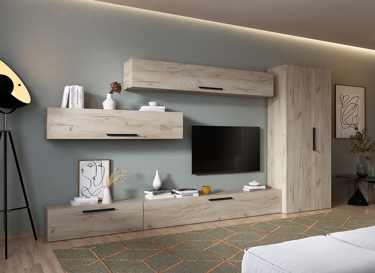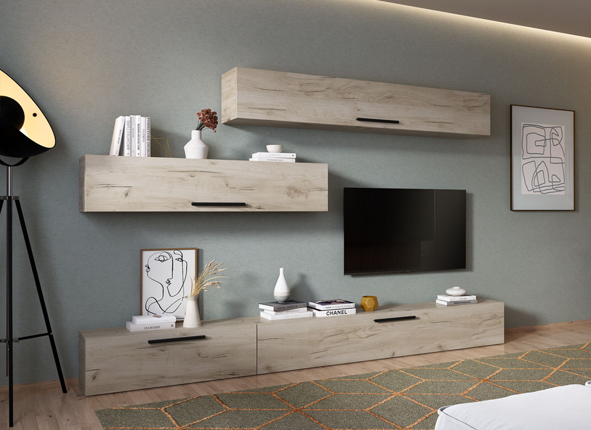 Living Pati 001 – Mobila Sufragerie Stejar Living Pati 001 – Mobila Sufragerie Stejar face parte dintr-o categorie de mobilier modern, contemporan ce imbina designul cu utilitatea. Familia de living Pati are 4 decoruri: stejar, alb, gri si beton . Am realizat peste 100 de configuratii din care puteti alege cu dimensiuni si stiluri diferite. Dulapul de haine este optional si puteti alege unul sau mai multe bucati. Livrare gratuita si rapida, 4-10 zile lucratoare prin flota proprie Suntem producatori de mobilier, fara intermediari Toate piesele de mobilier au o garantie de 2 ani Corpurile sunt construite din PAL melaminat de 16mm. Cantul aplicat este de 0,6 ce le permite muchiilor sa fie placute la atingere . Atentie! Elementele de prindere de tipul dibluri, surub sau horsurub nu sunt incluse deoarce tipul de prindere difera in functie de tipul peretelui pe care urmeaza a se monta mobilierul (beton, caramida, BCA, rigips, lemn etc). Video de prezentare familie Videoul de prezentare poate contine mai multe corpuri de mobilier sau mai putine in comparatie cu produsul de pe aceasta pagina. Scopul acestui video este de a detalia aspectul materialelor, accesoriilor cat si a familiei din care face parte. Dimensiuni Living Pati 001 – Mobila Sufragerie Stejar Imaginea alaturata prezinta compartimentarea pentru mobila de sufragerie Pati. Aceasta configuratie contine urmatoarele corpuri: 1 x Corp 920: L 92 x H 29 x A 26.7 cm 1 x Corp 1380: L 138 x H 29 x A 26.7 cm 2 x Corp 1850 : L 185 x H 29 x A 26.7 cm Optional dulap: L 79.8 x H 185 x A 35 cm Dimensiuni totale living Pati Fara dulap: L 277 x A 26.7 x H 180 cm Cu un dulap: L 356.8 x A 35 x H 185cm Spatiul de TV: diagonala maxima 139 cm. Toate corpurile se pot pune pe stanga sau pe dreapta in functie de cum doriti. Nu este obligatoriu pozitionarea ca in prezentare. Ele nu sunt prinse unul de celalalt, sunt independente. SCHITA MONTAJ corp 1850 suspendat SCHITA MONTAJ corp 1850 comoda SCHITA MONTAJ corp 1380 SCHITA MONTAJ corp 920 SCHITA MONTAJ dulap 2U Pati Pretul afisat nu include alte accesorii sau obiecte de decor (TV, tablouri, elemente de iluminat, covor etc.) Dimensiunile sunt exprimate in cm si pot oscila intre ± 10 mm. Produsul se livreaza demontat si este insotit de accesorii si instructiuni de asamblare.