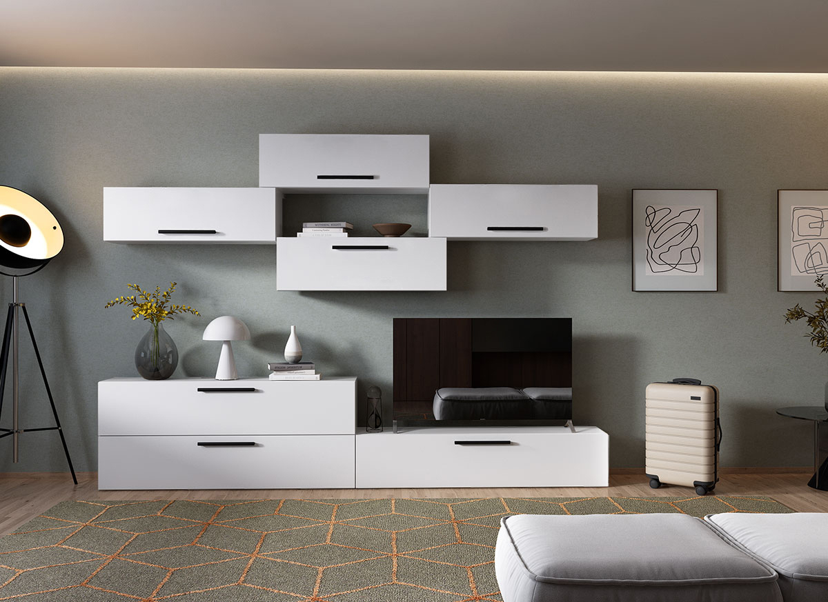 Living Pati 014 – Mobila Sufragerie Alba Living Pati 014 – Mobila Sufragerie Alba face parte dintr-o categorie de mobilier modern, contemporan ce imbina designul cu utilitatea. Familia de living Pati are 4 decoruri: stejar, alb, gri si beton . Am realizat peste 100 de configuratii din care puteti alege cu dimensiuni si stiluri diferite. Dulapul de haine este optional si puteti alege unul sau mai multe bucati. Livrare gratuita si rapida, 4-10 zile lucratoare prin flota proprie Suntem producatori de mobilier, fara intermediari Toate piesele de mobilier au o garantie de 2 ani Corpurile sunt construite din PAL melaminat de 16mm. Cantul aplicat este de 0,6 ce le permite muchiilor sa fie placute la atingere . Atentie! Elementele de prindere de tipul dibluri, surub sau horsurub nu sunt incluse deoarce tipul de prindere difera in functie de tipul peretelui pe care urmeaza a se monta mobilierul (beton, caramida, BCA, rigips, lemn etc). Video de prezentare familie Videoclipul de prezentare poate contine alte nuante, mai multe sau mai putine corpuri de mobilier in comparatie cu produsul de pe aceasta pagina. Scopul acestui video este de a detalia aspectul materialelor, accesoriilor cat si a familiei din care face parte. Dimensiuni Living Pati 014 – Mobila Sufragerie Alba Imaginea alaturata prezinta compartimentarea pentru mobila de sufragerie Pati. Aceasta configuratie contine urmatoarele corpuri: 3 x Corp 1380: L 138 x H 29 x A 26.7 cm 4 xCorp 920: L 92 x H 29 x A 26.7 cm Optional dulap: L 79.8 x H 185 x A 35 cm Dimensiuni totale living Pati Fara dulap: L 276 x A 26.7 x H 185 cm Cu un dulap: L 355.8 x A 35 x H 185 cm Spatiul de TV: diagonala maxima 139 cm. Toate corpurile se pot pune pe stanga sau pe dreapta in functie de cum doriti. Nu este obligatoriu pozitionarea ca in prezentare. Ele nu sunt prinse unul de celalalt, sunt independente. SCHITA MONTAJ corp 1380 comoda / inferior SCHITA MONTAJ CORP 920 superior SCHITA MONTAJ dulap 2U Pati Pretul afisat nu include alte accesorii sau obiecte de decor (TV, tablouri, elemente de iluminat, covor etc.) Dimensiunile sunt exprimate in cm si pot oscila intre ± 10 mm. Produsul se livreaza demontat si este insotit de accesorii si instructiuni de asamblare.