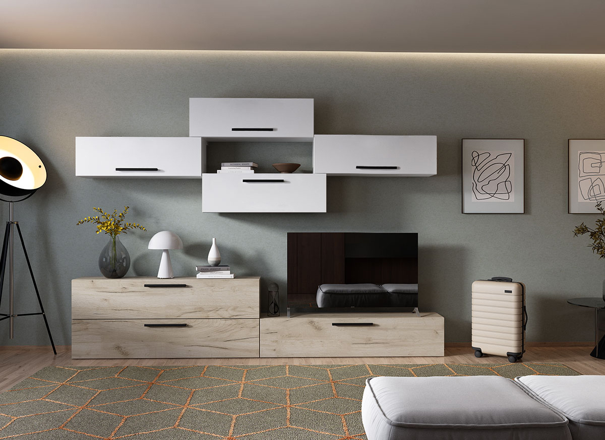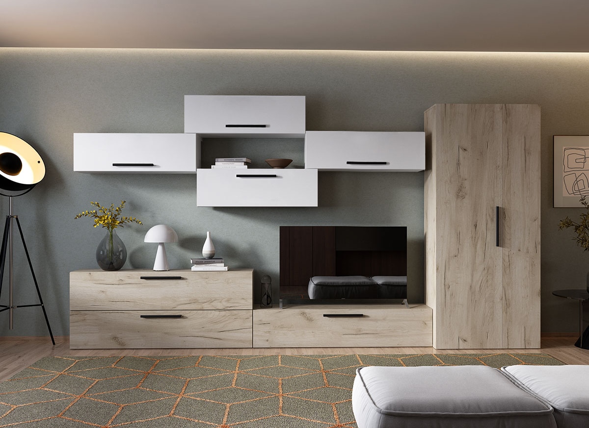 Living Pati 015 – Mobila Sufragerie Alb + Stejar Living Pati 015 – Mobila Sufragerie Alb + Stejar face parte dintr-o categorie de mobilier modern, contemporan ce imbina designul cu utilitatea. Familia de living Pati are 4 decoruri: stejar, alb, gri si beton . Am realizat peste 100 de configuratii din care puteti alege cu dimensiuni si stiluri diferite. Dulapul de haine este optional si puteti alege unul sau mai multe bucati. Livrare gratuita si rapida, 4-10 zile lucratoare prin flota proprie Suntem producatori de mobilier, fara intermediari Toate piesele de mobilier au o garantie de 2 ani Corpurile sunt construite din PAL melaminat de 16mm. Cantul aplicat este de 0,6 ce le permite muchiilor sa fie placute la atingere . Atentie! Elementele de prindere de tipul dibluri, surub sau horsurub nu sunt incluse deoarce tipul de prindere difera in functie de tipul peretelui pe care urmeaza a se monta mobilierul (beton, caramida, BCA, rigips, lemn etc). Video de prezentare familie Videoul de prezentare poate contine mai multe corpuri de mobilier sau mai putine in comparatie cu produsul de pe aceasta pagina. Scopul acestui video este de a detalia aspectul materialelor, accesoriilor cat si a familiei din care face parte. Dimensiuni Living Pati 015 – Mobila Sufragerie Alb + Stejar Imaginea alaturata prezinta compartimentarea pentru mobila de sufragerie Pati. Aceasta configuratie contine urmatoarele corpuri: 3 x Corp 1380: L 138 x H 29 x A 26.7 cm 4 xCorp 920: L 92 x H 29 x A 26.7 cm Optional dulap: L 79.8 x H 185 x A 35 cm Dimensiuni totale living Pati Fara dulap: L 276 x A 26.7 x H 185 cm Cu un dulap: L 355.8 x A 35 x H 185 cm Spatiul de TV: diagonala maxima 139 cm. Toate corpurile se pot pune pe stanga sau pe dreapta in functie de cum doriti. Nu este obligatoriu pozitionarea ca in prezentare. Ele nu sunt prinse unul de celalalt, sunt independente. SCHITA MONTAJ corp 1380 comoda / inferior SCHITA MONTAJ CORP 920 superior SCHITA MONTAJ dulap 2U Pati Pretul afisat nu include alte accesorii sau obiecte de decor (TV, tablouri, elemente de iluminat, covor etc.) Dimensiunile sunt exprimate in cm si pot oscila intre ± 10 mm. Produsul se livreaza demontat si este insotit de accesorii si instructiuni de asamblare.