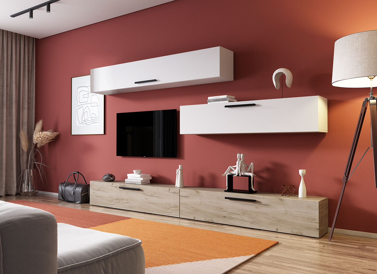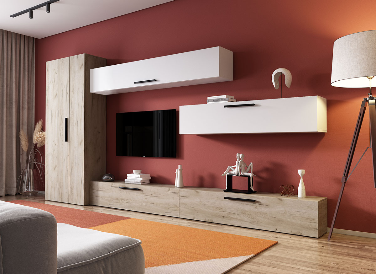 Living Pati 023 – Mobila Sufragerie Stejar + Alb Living Pati 023 – Mobila Sufragerie Stejar + Alb face parte dintr-o categorie de mobilier modern, contemporan ce imbina designul cu utilitatea. Familia de living Pati are 4 decoruri: stejar, alb, gri si beton . Am realizat peste 100 de configuratii din care puteti alege cu dimensiuni si stiluri diferite. Dulapul de haine este optional si puteti alege unul sau mai multe bucati. Livrare gratuita si rapida, 4-10 zile lucratoare prin flota proprie Suntem producatori de mobilier, fara intermediari Toate piesele de mobilier au o garantie de 2 ani Corpurile sunt construite din PAL melaminat de 16mm. Cantul aplicat este de 0,6 ce le permite muchiilor sa fie placute la atingere . Atentie! Elementele de prindere de tipul dibluri, surub sau horsurub nu sunt incluse deoarce tipul de prindere difera in functie de tipul peretelui pe care urmeaza a se monta mobilierul (beton, caramida, BCA, rigips, lemn etc). Video de prezentare familie Videoul de prezentare poate contine mai multe corpuri de mobilier sau mai putine in comparatie cu produsul de pe aceasta pagina. Scopul acestui video este de a detalia aspectul materialelor, accesoriilor cat si a familiei din care face parte. Dimensiuni Living Pati 023 – Mobila Sufragerie Stejar + Alb Imaginea alaturata prezinta compartimentarea pentru mobila de sufragerie Pati. Aceasta configuratie contine urmatoarele corpuri: 3 x Corp 1380: L 138 x H 29 x A 26.7 cm 1 x Corp 1850: L 185 x H 29 x A 26.7 cm Optional dulap: L 79.8 x H 185 x A 35 cm Dimensiuni totale living Pati Fara dulap: L 276 x A 26.7 x H 175 cm Cu un dulap: L 355.8 x A 35 x H 185 cm Spatiul de TV: diagonala maxima 139 cm. Toate corpurile se pot pune pe stanga sau pe dreapta in functie de cum doriti. Nu este obligatoriu pozitionarea ca in prezentare. Ele nu sunt prinse unul de celalalt, sunt independente. SCHITA MONTAJ corp 1380 comoda / inferior SCHITA MONTAJ CORP 1850 SUSPENDAT SCHITA MONTAJ dulap 2U Pati Pretul afisat nu include alte accesorii sau obiecte de decor (TV, tablouri, elemente de iluminat, covor etc.) Dimensiunile sunt exprimate in cm si pot oscila intre ± 10 mm. Produsul se livreaza demontat si este insotit de accesorii si instructiuni de asamblare.