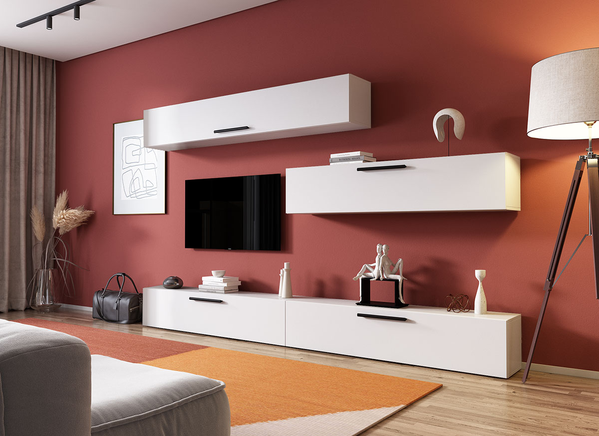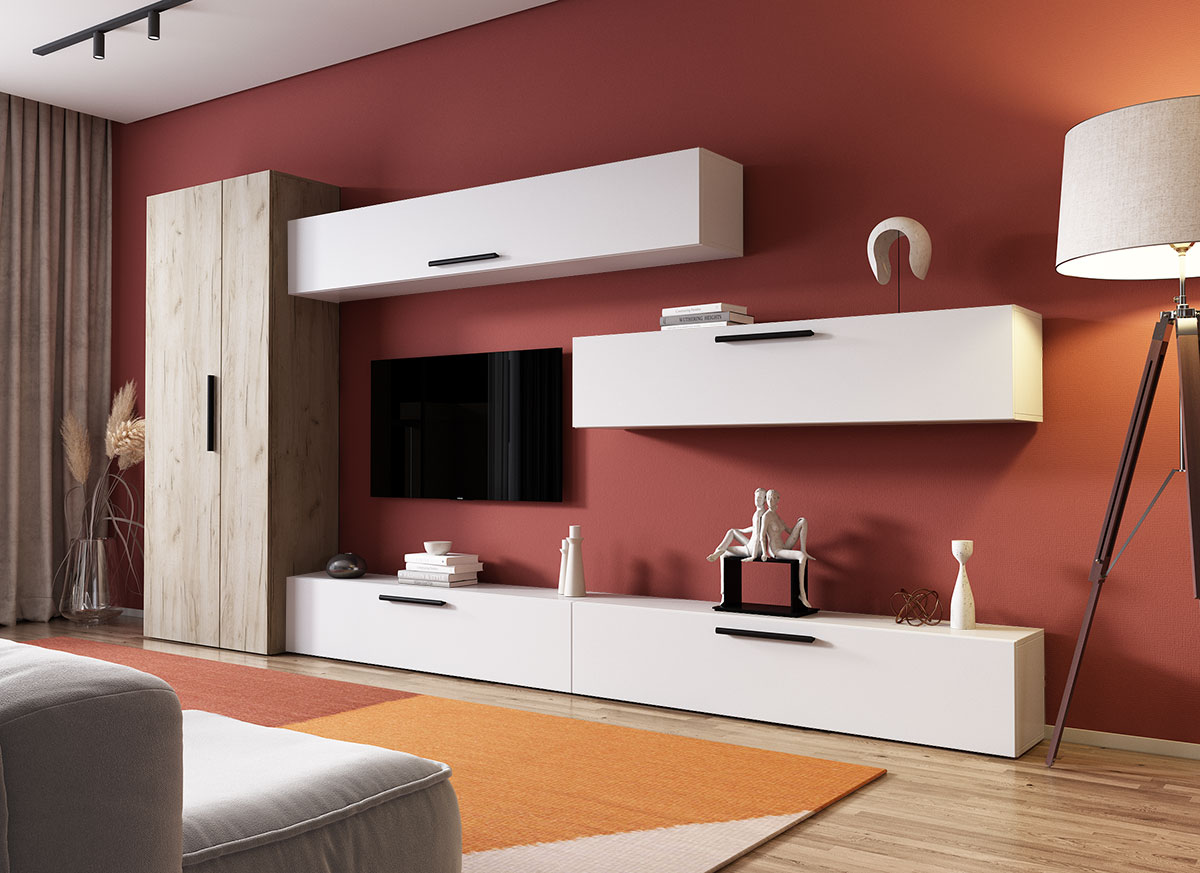 Living Pati 024 – Mobila Sufragerie Alba Living Pati 024 – Mobila Sufragerie Alba face parte dintr-o categorie de mobilier modern, contemporan ce imbina designul cu utilitatea. Familia de living Pati are 4 decoruri: stejar, alb, gri si beton . Am realizat peste 100 de configuratii din care puteti alege cu dimensiuni si stiluri diferite. Dulapul de haine este optional si puteti alege unul sau mai multe bucati. Livrare gratuita si rapida, 4-10 zile lucratoare prin flota proprie Suntem producatori de mobilier, fara intermediari Toate piesele de mobilier au o garantie de 2 ani Corpurile sunt construite din PAL melaminat de 16mm. Cantul aplicat este de 0,6 ce le permite muchiilor sa fie placute la atingere . Atentie! Elementele de prindere de tipul dibluri, surub sau horsurub nu sunt incluse deoarce tipul de prindere difera in functie de tipul peretelui pe care urmeaza a se monta mobilierul (beton, caramida, BCA, rigips, lemn etc). Video de prezentare familie Videoclipul de prezentare poate contine alte nuante, mai multe sau mai putine corpuri de mobilier in comparatie cu produsul de pe aceasta pagina. Scopul acestui video este de a detalia aspectul materialelor, accesoriilor cat si a familiei din care face parte. Dimensiuni Living Pati 024 – Mobila Sufragerie Alba Imaginea alaturata prezinta compartimentarea pentru mobila de sufragerie Pati. Aceasta configuratie contine urmatoarele corpuri: 3 x Corp 1380: L 138 x A 26.7 x H 29 cm 1 x Corp 1850: L 185 x A 26.7 x H 29 cm Optional dulap: L 79.8 x A 35 x H 185 cm Dimensiuni totale living Pati Fara dulap: L 276 x A 26.7 x H 175 cm Cu un dulap: L 355.8 x A 35 x H 185 cm Spatiul de TV: diagonala maxima 139 cm. Toate corpurile se pot pune pe stanga sau pe dreapta in functie de cum doriti. Nu este obligatoriu pozitionarea ca in prezentare. Ele nu sunt prinse unul de celalalt, sunt independente. SCHITA MONTAJ corp 1380 comoda / inferior SCHITA MONTAJ CORP 1850 SUSPENDAT SCHITA MONTAJ dulap 2U Pati Pretul afisat nu include alte accesorii sau obiecte de decor (TV, tablouri, elemente de iluminat, covor etc.) Dimensiunile sunt exprimate in cm si pot oscila intre ± 10 mm. Produsul se livreaza demontat si este insotit de accesorii si instructiuni de asamblare.