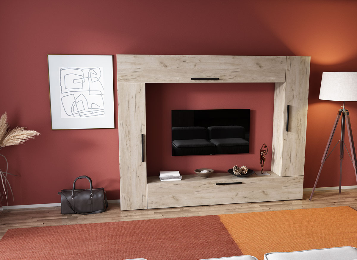 Living Pati 025 – Mobila Sufragerie Stejar Living Pati 025 – Mobila Sufragerie Stejar face parte dintr-o categorie de mobilier modern, contemporan ce imbina designul cu utilitatea. Familia de living Pati are 4 decoruri: stejar, alb, gri si beton . Am realizat peste 100 de configuratii din care puteti alege cu dimensiuni si stiluri diferite. Dulapul de haine este optional si puteti alege unul sau mai multe bucati. Livrare gratuita si rapida, 4-10 zile lucratoare prin flota proprie Suntem producatori de mobilier, fara intermediari Toate piesele de mobilier au o garantie de 2 ani Corpurile sunt construite din PAL melaminat de 16mm. Cantul aplicat este de 0,6 ce le permite muchiilor sa fie placute la atingere . Atentie! Elementele de prindere de tipul dibluri, surub sau horsurub nu sunt incluse deoarce tipul de prindere difera in functie de tipul peretelui pe care urmeaza a se monta mobilierul (beton, caramida, BCA, rigips, lemn etc). Video de prezentare familie Videoul de prezentare poate contine mai multe corpuri de mobilier sau mai putine in comparatie cu produsul de pe aceasta pagina. Scopul acestui video este de a detalia aspectul materialelor, accesoriilor cat si a familiei din care face parte. Dimensiuni Living Pati 025 – Mobila Sufragerie Stejar Imaginea alaturata prezinta compartimentarea pentru mobila de sufragerie Pati. Aceasta configuratie contine urmatoarele corpuri: 2 x Corp 1380: L 138 x H 29 x A 26.7 cm 2 x Corp 1850: L 185 x H 29 x A 26.7 cm Optional dulap: L 79.8 x H 185 x A 35 cm Dimensiuni totale living Pati Fara dulap: L 214 x A 26.7 x H 170 cm Cu un dulap: L 293.8 x A 35 x H 185 cm Spatiul de TV: diagonala maxima 139 cm. Toate corpurile se pot pune pe stanga sau pe dreapta in functie de cum doriti. Nu este obligatoriu pozitionarea ca in prezentare. Ele nu sunt prinse unul de celalalt, sunt independente. SCHITA MONTAJ CORP 1850 SUSPENDAT SCHITA MONTAJ CORP 1850 COMODA SCHITA MONTAJ CORP 1380 VERTICAL SCHITA MONTAJ dulap 2U Pati Pretul afisat nu include alte accesorii sau obiecte de decor (TV, tablouri, elemente de iluminat, covor etc.) Dimensiunile sunt exprimate in cm si pot oscila intre ± 10 mm. Produsul se livreaza demontat si este insotit de accesorii si instructiuni de asamblare.