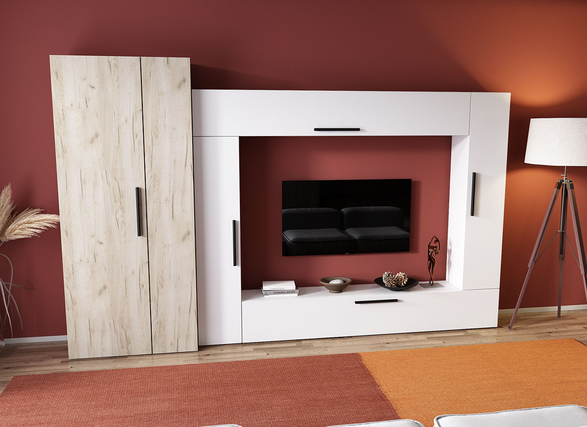 Living Pati 026 – Mobila Sufragerie Alba Living Pati 026 – Mobila Sufragerie Alba face parte dintr-o categorie de mobilier modern, contemporan ce imbina designul cu utilitatea. Familia de living Pati are 4 decoruri: stejar, alb, gri si beton . Am realizat peste 100 de configuratii din care puteti alege cu dimensiuni si stiluri diferite. Dulapul de haine este optional si puteti alege unul sau mai multe bucati. Livrare gratuita si rapida, 4-10 zile lucratoare prin flota proprie Suntem producatori de mobilier, fara intermediari Toate piesele de mobilier au o garantie de 2 ani Corpurile sunt construite din PAL melaminat de 16mm. Cantul aplicat este de 0,6 ce le permite muchiilor sa fie placute la atingere . Atentie! Elementele de prindere de tipul dibluri, surub sau horsurub nu sunt incluse deoarce tipul de prindere difera in functie de tipul peretelui pe care urmeaza a se monta mobilierul (beton, caramida, BCA, rigips, lemn etc). Video de prezentare familie Videoclipul de prezentare poate contine alte nuante, mai multe sau mai putine corpuri de mobilier in comparatie cu produsul de pe aceasta pagina. Scopul acestui video este de a detalia aspectul materialelor, accesoriilor cat si a familiei din care face parte. Dimensiuni Living Pati 026 – Mobila Sufragerie Alba Imaginea alaturata prezinta compartimentarea pentru mobila de sufragerie Pati. Aceasta configuratie contine urmatoarele corpuri: 2 x Corp 1380: L 138 x H 29 x A 26.7 cm 2 x Corp 1850: L 185 x H 29 x A 26.7 cm Optional dulap: L 79.8 x H 185 x A 35 cm Dimensiuni totale living Pati Fara dulap: L 214 x A 26.7 x H 170 cm Cu un dulap: L 293.8 x A 35 x H 185 cm Spatiul de TV: diagonala maxima 139 cm. Toate corpurile se pot pune pe stanga sau pe dreapta in functie de cum doriti. Nu este obligatoriu pozitionarea ca in prezentare. Ele nu sunt prinse unul de celalalt, sunt independente. SCHITA MONTAJ CORP 1850 SUSPENDAT SCHITA MONTAJ CORP 1850 COMODA SCHITA MONTAJ CORP 1380 VERTICAL SCHITA MONTAJ dulap 2U Pati Pretul afisat nu include alte accesorii sau obiecte de decor (TV, tablouri, elemente de iluminat, covor etc.) Dimensiunile sunt exprimate in cm si pot oscila intre ± 10 mm. Produsul se livreaza demontat si este insotit de accesorii si instructiuni de asamblare.