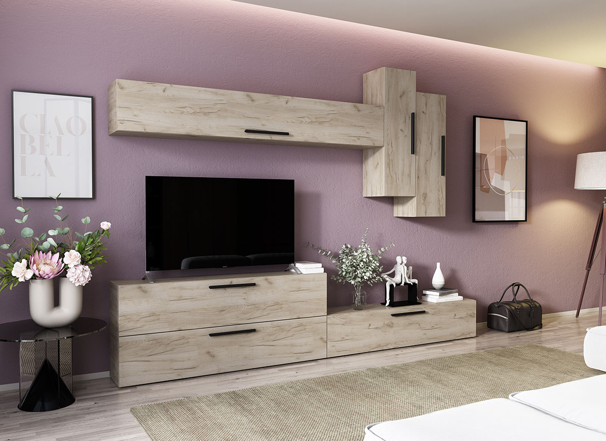 Living Pati 046 – Mobila Sufragerie Stejar Living Pati 046 – Mobila Sufragerie Stejar face parte dintr-o categorie de mobilier modern, contemporan ce imbina designul cu utilitatea. Familia de living Pati are 4 decoruri: stejar, alb, gri si beton . Am realizat peste 100 de configuratii din care puteti alege cu dimensiuni si stiluri diferite. Dulapul de haine este optional si puteti alege unul sau mai multe bucati. Livrare gratuita si rapida, 4-10 zile lucratoare prin flota proprie Suntem producatori de mobilier, fara intermediari Toate piesele de mobilier au o garantie de 2 ani Corpurile sunt construite din PAL melaminat de 16mm. Cantul aplicat este de 0,6 ce le permite muchiilor sa fie placute la atingere . Atentie! Elementele de prindere de tipul dibluri, surub sau horsurub nu sunt incluse deoarce tipul de prindere difera in functie de tipul peretelui pe care urmeaza a se monta mobilierul (beton, caramida, BCA, rigips, lemn etc). Video de prezentare familie Videoul de prezentare poate contine mai multe corpuri de mobilier sau mai putine in comparatie cu produsul de pe aceasta pagina. Scopul acestui video este de a detalia aspectul materialelor, accesoriilor cat si a familiei din care face parte. Dimensiuni Living Pati 046 – Mobila Sufragerie Stejar Imaginea alaturata prezinta compartimentarea pentru mobila de sufragerie Pati. Aceasta configuratie contine urmatoarele corpuri: 3 x Corp 1380: L 138 x H 29 x A 26.7 cm 2 x Corp 920: L 92 x H 29 x A 26.7 cm 1 x Corp 1850: L 185 x H 29 x A 26.7 cm Optional dulap: L 79.8 x H 185 x A 35 cm Dimensiuni totale living Pati Fara dulap: L 276 x A 26.7 x H 195 cm Cu un dulap: L 355.8 x A 35 x H 195 cm Spatiul de TV: diagonala maxima 139 cm. Toate corpurile se pot pune pe stanga sau pe dreapta in functie de cum doriti. Nu este obligatoriu pozitionarea ca in prezentare. Ele nu sunt prinse unul de celalalt, sunt independente. SCHITA MONTAJ corp 1380 comoda / inferior SCHITA MONTAJ CORP 1850 SUSPENDAT SCHITA MONTAJ CORP 920 vertical SCHITA MONTAJ dulap 2U Pati Pretul afisat nu include alte accesorii sau obiecte de decor (TV, tablouri, elemente de iluminat, covor etc.) Dimensiunile sunt exprimate in cm si pot oscila intre ± 10 mm. Produsul se livreaza demontat si este insotit de accesorii si instructiuni de asamblare.