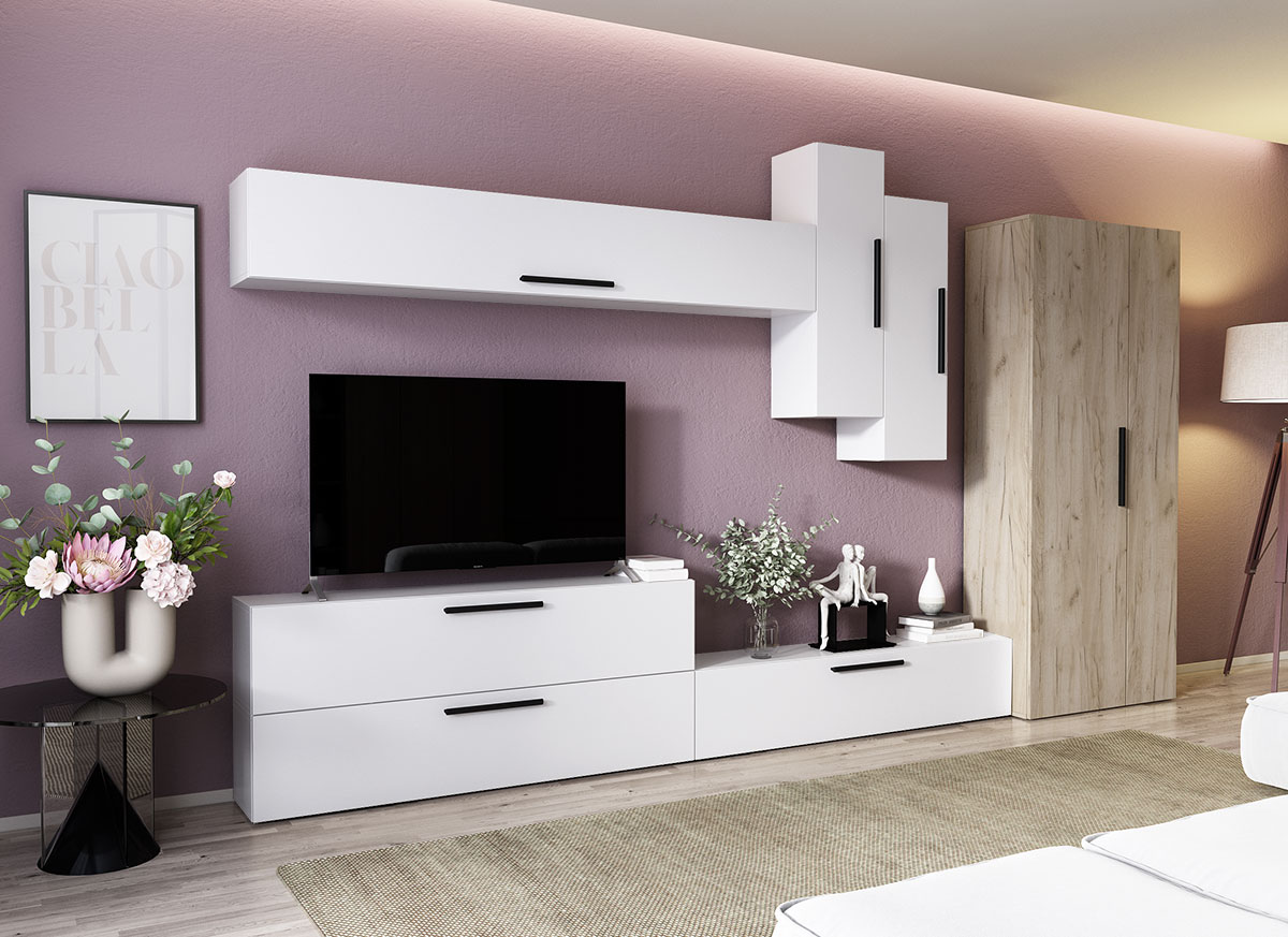 Living Pati 048 – Mobila Sufragerie Alba Living Pati 048 – Mobila Sufragerie Alba face parte dintr-o categorie de mobilier modern, contemporan ce imbina designul cu utilitatea. Familia de living Pati are 4 decoruri: stejar, alb, gri si beton . Am realizat peste 100 de configuratii din care puteti alege cu dimensiuni si stiluri diferite. Dulapul de haine este optional si puteti alege unul sau mai multe bucati. Livrare gratuita si rapida, 4-10 zile lucratoare prin flota proprie Suntem producatori de mobilier, fara intermediari Toate piesele de mobilier au o garantie de 2 ani Corpurile sunt construite din PAL melaminat de 16mm. Cantul aplicat este de 0,6 ce le permite muchiilor sa fie placute la atingere . Atentie! Elementele de prindere de tipul dibluri, surub sau horsurub nu sunt incluse deoarce tipul de prindere difera in functie de tipul peretelui pe care urmeaza a se monta mobilierul (beton, caramida, BCA, rigips, lemn etc). Video de prezentare familie Videoul de prezentare poate contine alte nuante, mai multe sau mai putine corpuri de mobilier in comparatie cu produsul de pe aceasta pagina. Scopul acestui video este de a detalia aspectul materialelor, accesoriilor cat si a familiei din care face parte. Dimensiuni Living Pati 048 – Mobila Sufragerie Alba Imaginea alaturata prezinta compartimentarea pentru mobila de sufragerie Pati. Aceasta configuratie contine urmatoarele corpuri: 3 x Corp 1380: L 138 x H 29 x A 26.7 cm 2 x Corp 920: L 92 x H 29 x A 26.7 cm 1 x Corp 1850: L 185 x H 29 x A 26.7 cm Optional dulap: L 79.8 x H 185 x A 35 cm Dimensiuni totale living Pati Fara dulap: L 276 x A 26.7 x H 195 cm Cu un dulap: L 355.8 x A 35 x H 195cm Spatiul de TV: diagonala maxima 139 cm. Toate corpurile se pot pune pe stanga sau pe dreapta in functie de cum doriti. Nu este obligatoriu pozitionarea ca in prezentare. Ele nu sunt prinse unul de celalalt, sunt independente. SCHITA MONTAJ corp 1380 comoda / inferior SCHITA MONTAJ CORP 1850 SUSPENDAT SCHITA MONTAJ CORP 920 vertical SCHITA MONTAJ dulap 2U Pati Pretul afisat nu include alte accesorii sau obiecte de decor (TV, tablouri, elemente de iluminat, covor etc.) Dimensiunile sunt exprimate in cm si pot oscila intre ± 10 mm. Produsul se livreaza demontat si este insotit de accesorii si instructiuni de asamblare.