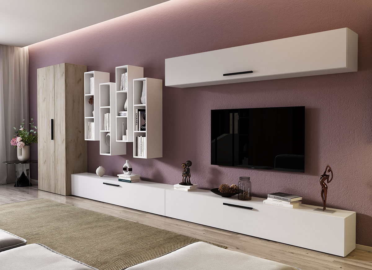 Living Pati 051 – Mobila Sufragerie Alba Living Pati 051 – Mobila Sufragerie Alba face parte dintr-o categorie de mobilier modern, contemporan ce imbina designul cu utilitatea. Familia de living Pati are 4 decoruri: stejar, alb, gri si beton . Am realizat peste 100 de configuratii din care puteti alege cu dimensiuni si stiluri diferite. Dulapul de haine este optional si puteti alege unul sau mai multe bucati. Livrare gratuita si rapida, 4-10 zile lucratoare prin flota proprie Suntem producatori de mobilier, fara intermediari Toate piesele de mobilier au o garantie de 2 ani Corpurile sunt construite din PAL melaminat de 16mm. Cantul aplicat este de 0,6 ce le permite muchiilor sa fie placute la atingere . Atentie! Elementele de prindere de tipul dibluri, surub sau horsurub nu sunt incluse deoarce tipul de prindere difera in functie de tipul peretelui pe care urmeaza a se monta mobilierul (beton, caramida, BCA, rigips, lemn etc). Video de prezentare familie Videoul de prezentare poate contine alte nuante, mai multe sau mai putine corpuri de mobilier in comparatie cu produsul de pe aceasta pagina. Scopul acestui video este de a detalia aspectul materialelor, accesoriilor cat si a familiei din care face parte. Dimensiuni Living Pati 051 – Mobila Sufragerie Alba Imaginea alaturata prezinta compartimentarea pentru mobila de sufragerie Pati. Aceasta configuratie contine urmatoarele corpuri: 3 x Corp 1850: L 185 x H 29 x A 26.7 cm 4 x Corp decorativ: L 91.5 x H 23.2 x A 25 cm Optional dulap: L 79.8 x H 185 x A 35 cm Dimensiuni totale living Pati Fara dulap: L 370 x A 26.7 x H 180 cm Cu un dulap: L 449.8 x A 35 x H 185 cm Spatiul de TV: diagonala maxima 139 cm. Toate corpurile se pot pune pe stanga sau pe dreapta in functie de cum doriti. Nu este obligatoriu pozitionarea ca in prezentare. Ele nu sunt prinse unul de celalalt, sunt independente. SCHITA MONTAJ CORP 1850 SUSPENDAT SCHITA MONTAJ CORP 1850 COMODA SCHITA MONTAJ CORP DECORATIV SCHITA MONTAJ dulap 2U Pati Pretul afisat nu include alte accesorii sau obiecte de decor (TV, tablouri, elemente de iluminat, covor etc.) Dimensiunile sunt exprimate in cm si pot oscila intre ± 10 mm. Produsul se livreaza demontat si este insotit de accesorii si instructiuni de asamblare.