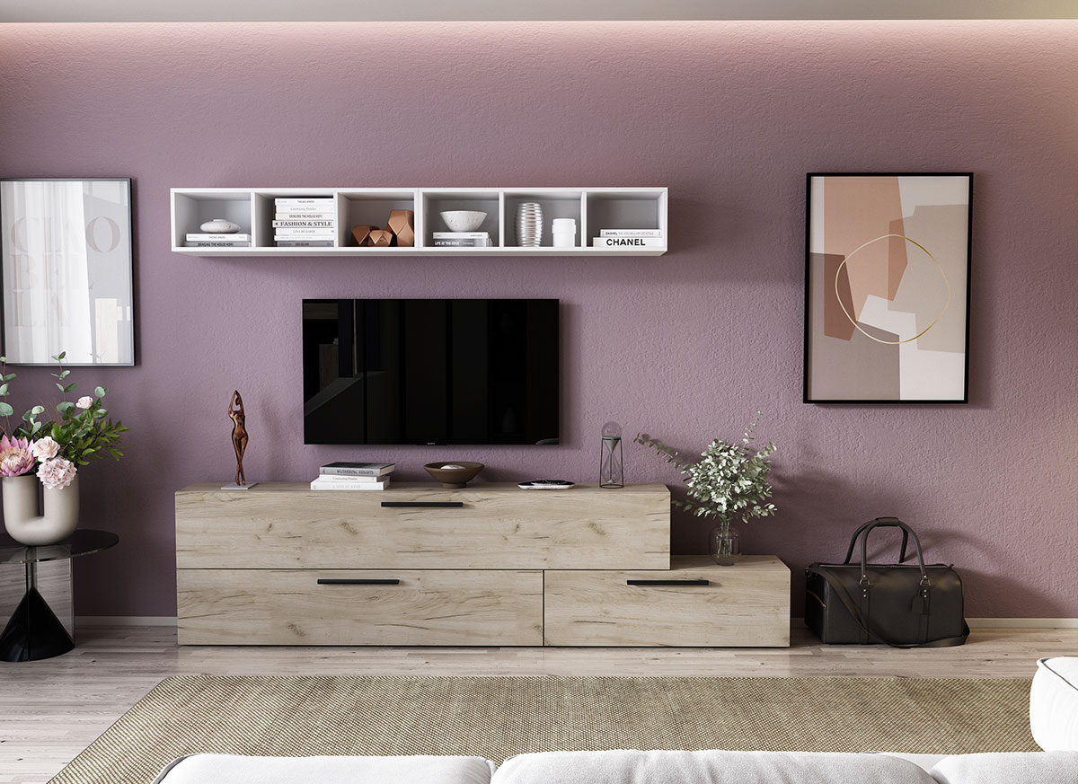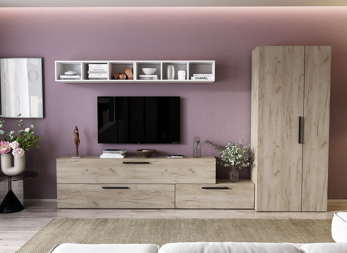 Living Pati 055 – Mobila Sufragerie Stejar Living Pati 055 – Mobila Sufragerie Stejar face parte dintr-o categorie de mobilier modern, contemporan ce imbina designul cu utilitatea. Familia de living Pati are 4 decoruri: stejar, alb, gri si beton . Am realizat peste 100 de configuratii din care puteti alege cu dimensiuni si stiluri diferite. Dulapul de haine este optional si puteti alege unul sau mai multe bucati. Livrare gratuita si rapida, 4-10 zile lucratoare prin flota proprie Suntem producatori de mobilier, fara intermediari Toate piesele de mobilier au o garantie de 2 ani Corpurile sunt construite din PAL melaminat de 16mm. Cantul aplicat este de 0,6 ce le permite muchiilor sa fie placute la atingere . Atentie! Elementele de prindere de tipul dibluri, surub sau horsurub nu sunt incluse deoarce tipul de prindere difera in functie de tipul peretelui pe care urmeaza a se monta mobilierul (beton, caramida, BCA, rigips, lemn etc). Video de prezentare familie Videoul de prezentare poate contine mai multe corpuri de mobilier sau mai putine in comparatie cu produsul de pe aceasta pagina. Scopul acestui video este de a detalia aspectul materialelor, accesoriilor cat si a familiei din care face parte. Dimensiuni Living Pati 055 – Mobila Sufragerie Stejar Imaginea alaturata prezinta compartimentarea pentru mobila de sufragerie Pati. Aceasta configuratie contine urmatoarele corpuri: 1 x Corp 920: L 92 x H 29 x A 26.7 cm 1 x Corp 1380: L 138 x H 29 x A 26.7 cm 1 x Corp 1850 : L 185 x H 29 x A 26.7 cm 2 x Corp decorativ: L 91.5 x H 23.2 x A 25 cm Optional dulap: L 79.8 x H 185 x A 35 cm Dimensiuni totale living Pati Fara dulap: L 230 x A 26.7 x H 170 cm Cu un dulap: L 309.8 x A 35 x H 185 cm Spatiul de TV: diagonala maxima 139 cm. Toate corpurile se pot pune pe stanga sau pe dreapta in functie de cum doriti. Nu este obligatoriu pozitionarea ca in prezentare. Ele nu sunt prinse unul de celalalt, sunt independente. SCHITA MONTAJ CORP DECORATIV SCHITA MONTAJ corp 1850 INFERIOR SCHITA MONTAJ CORP 1380 COMODA SCHITA MONTAJ CORP 920 COMODA SCHITA MONTAJ dulap 2U Pati Pretul afisat nu include alte accesorii sau obiecte de decor (TV, tablouri, elemente de iluminat, covor etc.) Dimensiunile sunt exprimate in cm si pot oscila intre ± 10 mm. Produsul se livreaza demontat si este insotit de accesorii si instructiuni de asamblare.