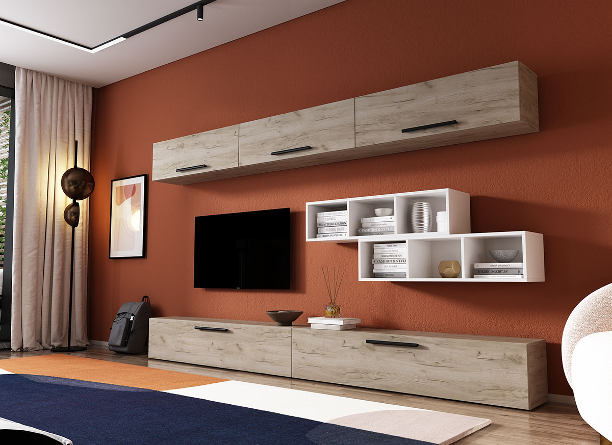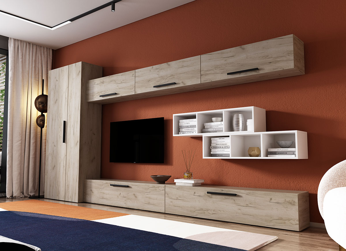 Living Pati 070 – Mobila Sufragerie Stejar + Alb Living Pati 070 – Mobila Sufragerie Stejar + Alb face parte dintr-o categorie de mobilier modern, contemporan ce imbina designul cu utilitatea. Familia de living Pati are 4 decoruri: stejar, alb, gri si beton . Am realizat peste 100 de configuratii din care puteti alege cu dimensiuni si stiluri diferite. Dulapul de haine este optional si puteti alege unul sau mai multe bucati. Livrare gratuita si rapida, 4-10 zile lucratoare prin flota proprie Suntem producatori de mobilier, fara intermediari Toate piesele de mobilier au o garantie de 2 ani Corpurile sunt construite din PAL melaminat de 16mm. Cantul aplicat este de 0,6 ce le permite muchiilor sa fie placute la atingere . Atentie! Elementele de prindere de tipul dibluri, surub sau horsurub nu sunt incluse deoarce tipul de prindere difera in functie de tipul peretelui pe care urmeaza a se monta mobilierul (beton, caramida, BCA, rigips, lemn etc). Video de prezentare familie Videoul de prezentare poate contine mai multe corpuri de mobilier sau mai putine in comparatie cu produsul de pe aceasta pagina. Scopul acestui video este de a detalia aspectul materialelor, accesoriilor cat si a familiei din care face parte. Dimensiuni Living Pati 070 – Mobila Sufragerie Stejar + Alb Imaginea alaturata prezinta compartimentarea pentru mobila de sufragerie Pati. Aceasta configuratie contine urmatoarele corpuri: 2 x Corp 1380: L 138 x H 29 x A 26.7 cm 3 x Corp 920: L 92 x H 29 x A 26.7 cm 2 x Corp decorativ: L 91.5 x H 23.2 x A 25 cm Optional dulap: L 79.8 x H 185 x A 35 cm Dimensiuni totale living Pati Fara dulap: L 276 x A 26.7 x H 170 cm Cu un dulap: L 355.8 x A 35 x H 185 cm Spatiul de TV: diagonala maxima 139 cm. Toate corpurile se pot pune pe stanga sau pe dreapta in functie de cum doriti. Nu este obligatoriu pozitionarea ca in prezentare. Ele nu sunt prinse unul de celalalt, sunt independente. SCHITA MONTAJ corp 1380 comoda SCHITA MONTAJ CORP 920 superior SCHITA MONTAJ CORP DECORATIV SCHITA MONTAJ dulap 2U Pati Pretul afisat nu include alte accesorii sau obiecte de decor (TV, tablouri, elemente de iluminat, covor etc.) Dimensiunile sunt exprimate in cm si pot oscila intre ± 10 mm. Produsul se livreaza demontat si este insotit de accesorii si instructiuni de asamblare.
