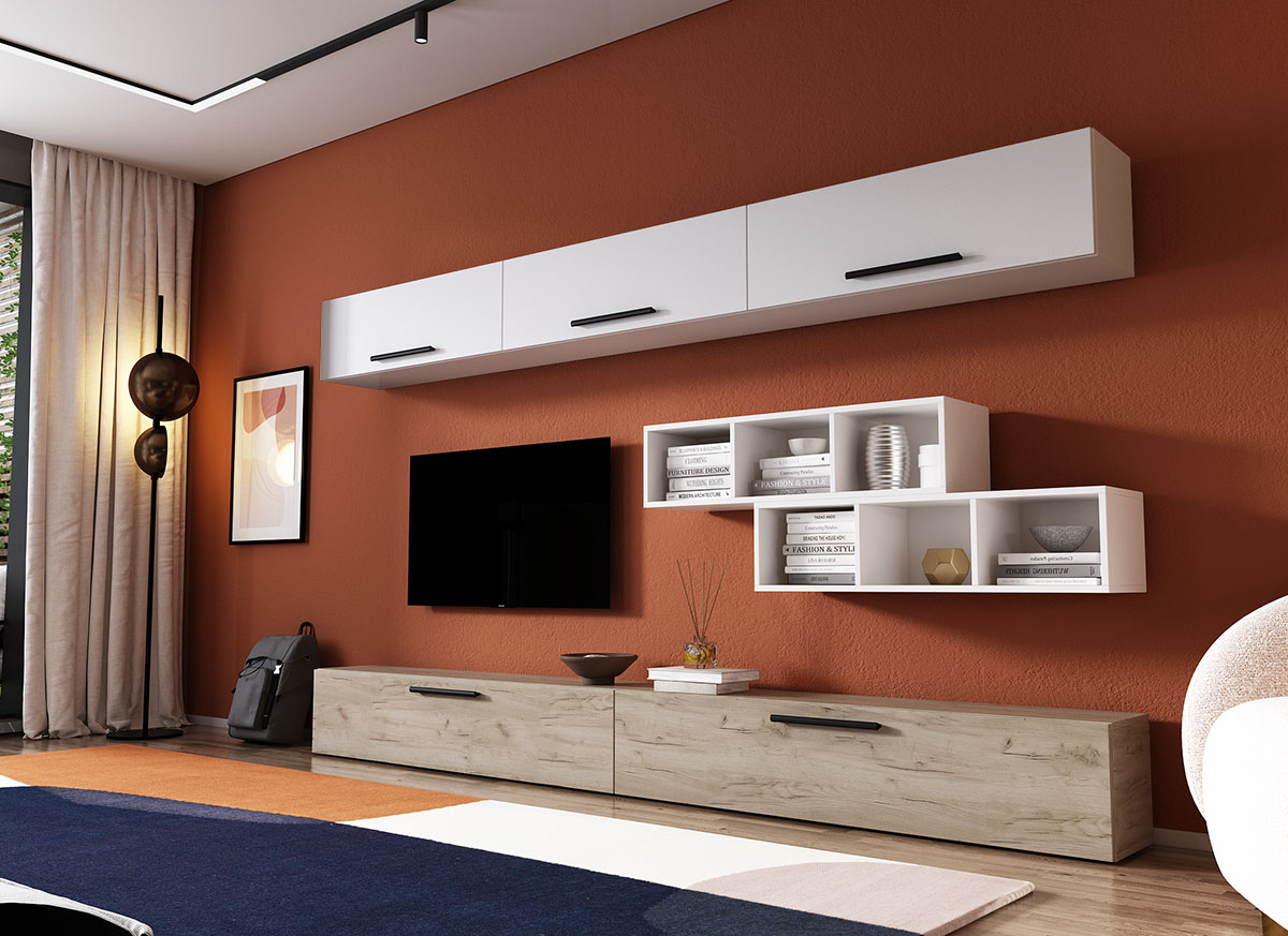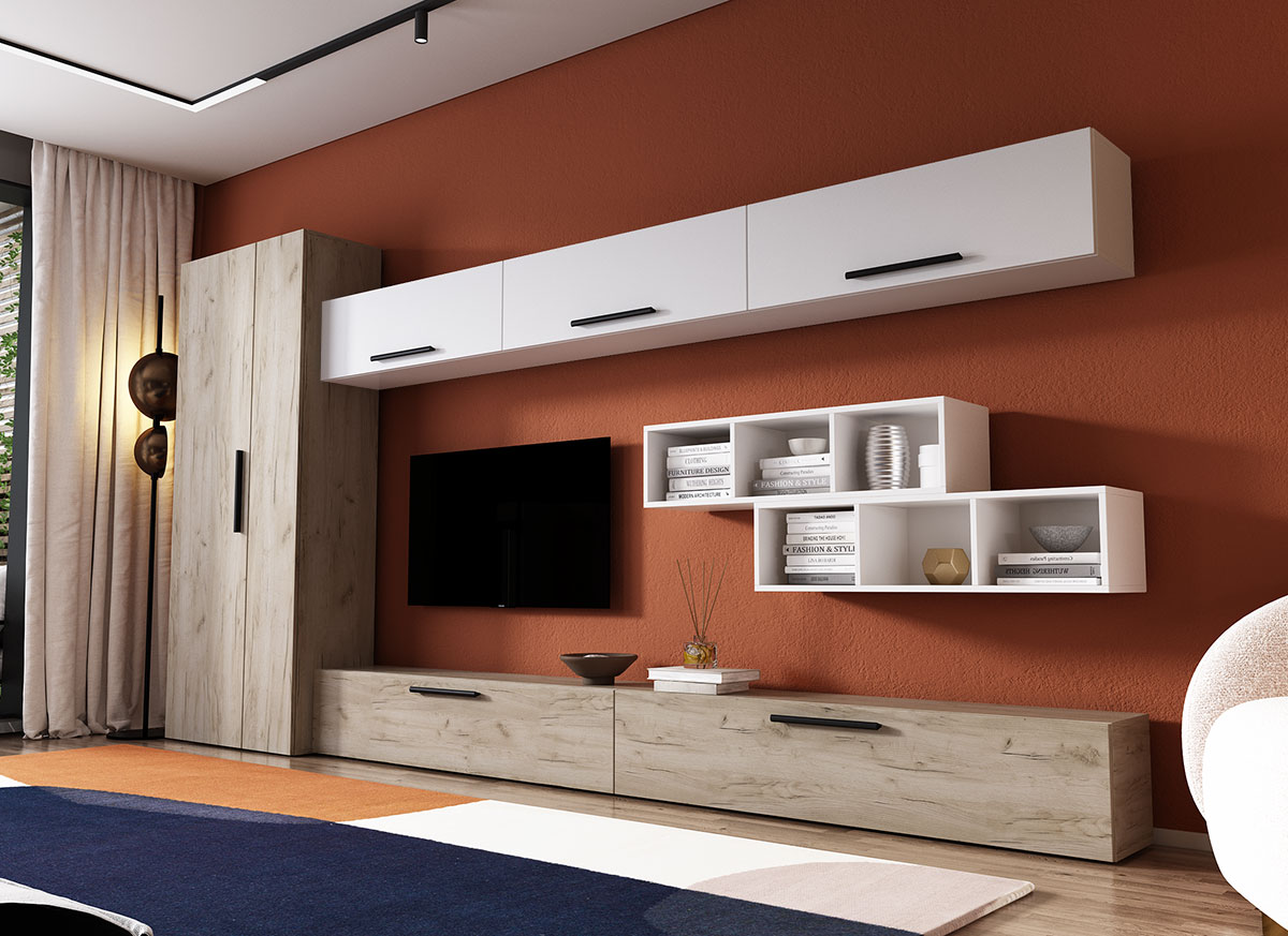 Living Pati 071 – Mobila Sufragerie Stejar + Alb Living Pati 071 – Mobila Sufragerie Stejar + Alb face parte dintr-o categorie de mobilier modern, contemporan ce imbina designul cu utilitatea. Familia de living Pati are 4 decoruri: stejar, alb, gri si beton . Am realizat peste 100 de configuratii din care puteti alege cu dimensiuni si stiluri diferite. Dulapul de haine este optional si puteti alege unul sau mai multe bucati. Livrare gratuita si rapida, 4-10 zile lucratoare prin flota proprie Suntem producatori de mobilier, fara intermediari Toate piesele de mobilier au o garantie de 2 ani Corpurile sunt construite din PAL melaminat de 16mm. Cantul aplicat este de 0,6 ce le permite muchiilor sa fie placute la atingere . Atentie! Elementele de prindere de tipul dibluri, surub sau horsurub nu sunt incluse deoarce tipul de prindere difera in functie de tipul peretelui pe care urmeaza a se monta mobilierul (beton, caramida, BCA, rigips, lemn etc). Video de prezentare familie Videoul de prezentare poate contine mai multe corpuri de mobilier sau mai putine in comparatie cu produsul de pe aceasta pagina. Scopul acestui video este de a detalia aspectul materialelor, accesoriilor cat si a familiei din care face parte. Dimensiuni Living Pati 071 – Mobila Sufragerie Stejar + Alb Imaginea alaturata prezinta compartimentarea pentru mobila de sufragerie Pati. Aceasta configuratie contine urmatoarele corpuri: 2 x Corp 1380: L 138 x H 29 x A 26.7 cm 3 x Corp 920: L 92 x H 29 x A 26.7 cm 2 x Corp decorativ: L 91.5 x H 23.2 x A 25 cm Optional dulap: L 79.8 x H 185 x A 35 cm Dimensiuni totale living Pati Fara dulap: L 276 x A 26.7 x H 170 cm Cu un dulap: L 355.8 x A 35 x H 185 cm Spatiul de TV: diagonala maxima 139 cm. Toate corpurile se pot pune pe stanga sau pe dreapta in functie de cum doriti. Nu este obligatoriu pozitionarea ca in prezentare. Ele nu sunt prinse unul de celalalt, sunt independente. SCHITA MONTAJ corp 1380 comoda SCHITA MONTAJ CORP 920 superior SCHITA MONTAJ CORP DECORATIV SCHITA MONTAJ dulap 2U Pati Pretul afisat nu include alte accesorii sau obiecte de decor (TV, tablouri, elemente de iluminat, covor etc.) Dimensiunile sunt exprimate in cm si pot oscila intre ± 10 mm. Produsul se livreaza demontat si este insotit de accesorii si instructiuni de asamblare.
