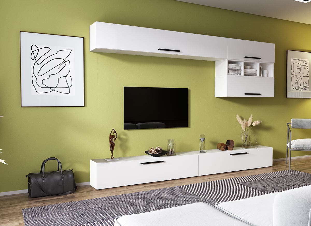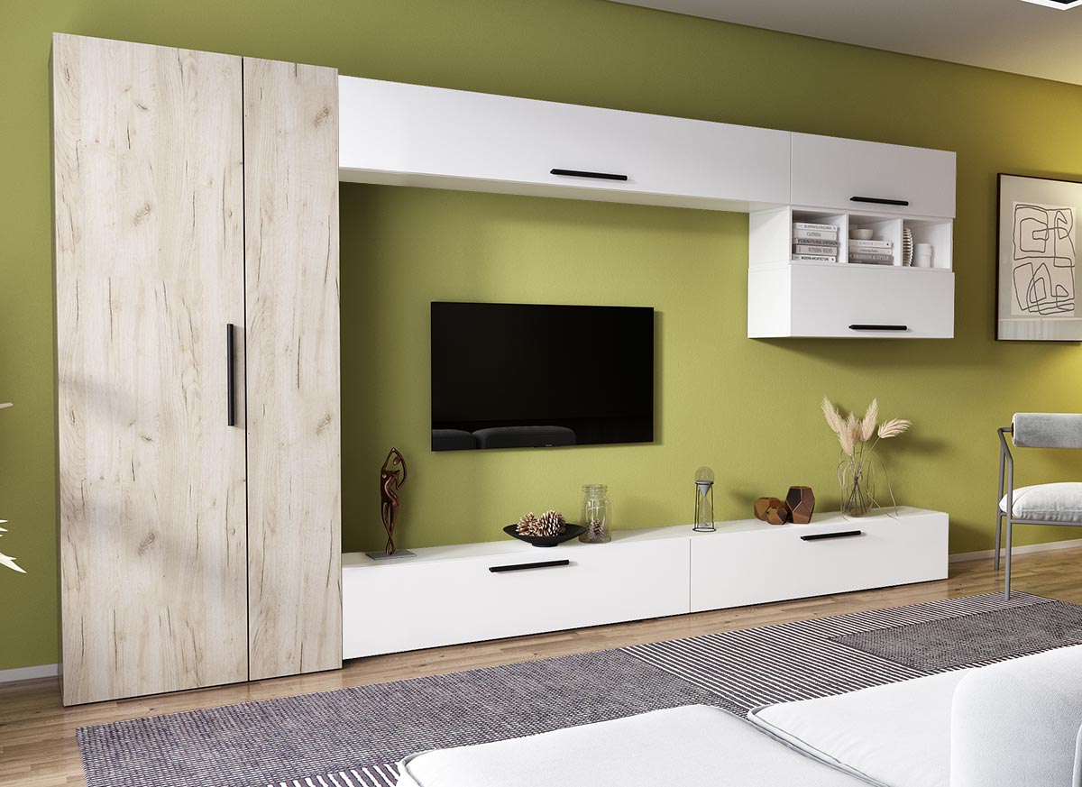 Living Pati 078 – Mobila Sufragerie Alba Living Pati 078 – Mobila Sufragerie Alba face parte dintr-o categorie de mobilier modern, contemporan ce imbina designul cu utilitatea. Familia de living Pati are 4 decoruri: stejar, alb, gri si beton . Am realizat peste 100 de configuratii din care puteti alege cu dimensiuni si stiluri diferite. Dulapul de haine este optional si puteti alege unul sau mai multe bucati. Livrare gratuita si rapida, 4-10 zile lucratoare prin flota proprie Suntem producatori de mobilier, fara intermediari Toate piesele de mobilier au o garantie de 2 ani Corpurile sunt construite din PAL melaminat de 16mm. Cantul aplicat este de 0,6 ce le permite muchiilor sa fie placute la atingere . Atentie! Elementele de prindere de tipul dibluri, surub sau horsurub nu sunt incluse deoarce tipul de prindere difera in functie de tipul peretelui pe care urmeaza a se monta mobilierul (beton, caramida, BCA, rigips, lemn etc). Video de prezentare familie Videoul de prezentare poate contine alte nuante, mai multe sau mai putine corpuri de mobilier in comparatie cu produsul de pe aceasta pagina. Scopul acestui video este de a detalia aspectul materialelor, accesoriilor cat si a familiei din care face parte. Dimensiuni Living Pati 078 – Mobila Sufragerie Alba Imaginea alaturata prezinta compartimentarea pentru mobila de sufragerie Pati. Aceasta configuratie contine urmatoarele corpuri: 1 x Corp 1850: L 185 x H 29 x A 26.7 cm 2 x Corp 920: L 92 x H 29 x A 26.7 cm 1 x Corp decorativ: L 91.5 x H 23.2 x A 25 cm 2 x Corp 1380: L 138 x H 29 x A 26.7 cm Optional dulap: L 79.8 x H 185 x A 35 cm Dimensiuni totale living Pati Fara dulap: L 276 x A 26.7 x H 170 cm Cu un dulap: L 355.8 x A 35 x H 185 cm Spatiul de TV: diagonala maxima 139 cm. Toate corpurile se pot pune pe stanga sau pe dreapta in functie de cum doriti. Nu este obligatoriu pozitionarea ca in prezentare. Ele nu sunt prinse unul de celalalt, sunt independente. SCHITA MONTAJ CORP DECORATIV SCHITA MONTAJ CORP 1380 COMODA SCHITA MONTAJ CORP 1850 SUPERIOR SCHITA MONTAJ CORP 920 SUPERIOR SCHITA MONTAJ dulap 2U Pati Pretul afisat nu include alte accesorii sau obiecte de decor (TV, tablouri, elemente de iluminat, covor etc.) Dimensiunile sunt exprimate in cm si pot oscila intre ± 10 mm. Produsul se livreaza demontat si este insotit de accesorii si instructiuni de asamblare.