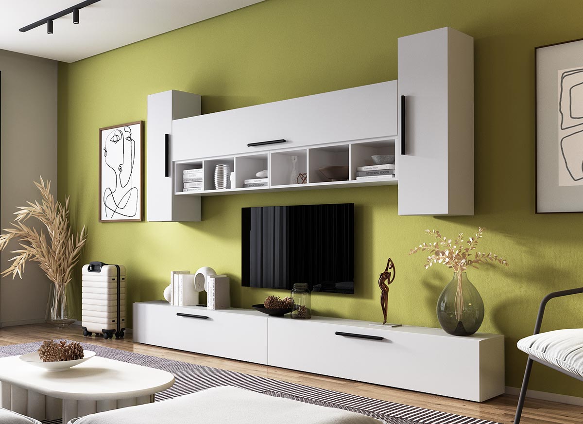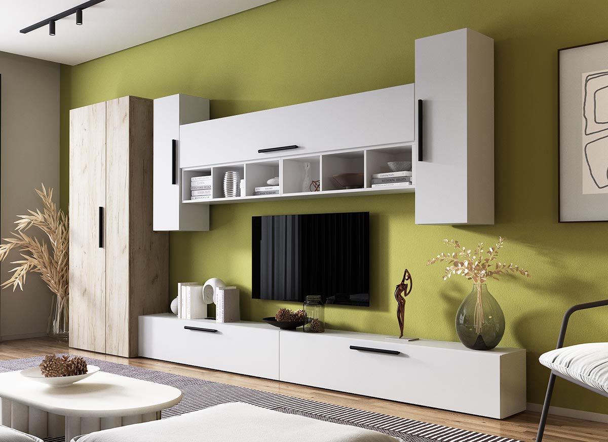 Living Pati 087 – Mobila Sufragerie Alba Living Pati 087 – Mobila Sufragerie Alba face parte dintr-o categorie de mobilier modern, contemporan ce imbina designul cu utilitatea. Familia de living Pati are 4 decoruri: stejar, alb, gri si beton . Am realizat peste 100 de configuratii din care puteti alege cu dimensiuni si stiluri diferite. Dulapul de haine este optional si puteti alege unul sau mai multe bucati. Livrare gratuita si rapida, 4-10 zile lucratoare prin flota proprie Suntem producatori de mobilier, fara intermediari Toate piesele de mobilier au o garantie de 2 ani Corpurile sunt construite din PAL melaminat de 16mm. Cantul aplicat este de 0,6 ce le permite muchiilor sa fie placute la atingere . Atentie! Elementele de prindere de tipul dibluri, surub sau horsurub nu sunt incluse deoarce tipul de prindere difera in functie de tipul peretelui pe care urmeaza a se monta mobilierul (beton, caramida, BCA, rigips, lemn etc). Video de prezentare familie Videoul de prezentare poate contine alte nuante, mai multe sau mai putine corpuri de mobilier in comparatie cu produsul de pe aceasta pagina. Scopul acestui video este de a detalia aspectul materialelor, accesoriilor cat si a familiei din care face parte. Dimensiuni Living Pati 087 – Mobila Sufragerie Alba Imaginea alaturata prezinta compartimentarea pentru mobila de sufragerie Pati. Aceasta configuratie contine urmatoarele corpuri: 2 x Corp 920: L 92 x H 29 x A 26.7 cm 2 x Corp 1380: L 138 x H 29 x A 26.7 cm 1 x Corp 1850: L 185 x H 29 x A 26.7 cm 2 x Corp decorativ: L 91.5 x H 23.2 x A 25 cm Optional dulap: L 79.8 x H 185 x A 35 cm Dimensiuni totale living Pati Fara dulap: L 276 x A 26.7 x H 185 cm Cu un dulap: L 355.8 x A 35 x H 185 cm Spatiul de TV: diagonala maxima 139 cm. Toate corpurile se pot pune pe stanga sau pe dreapta in functie de cum doriti. Nu este obligatoriu pozitionarea ca in prezentare. Ele nu sunt prinse unul de celalalt, sunt independente. SCHITA MONTAJ CORP 920 VERTICAL SCHITA MONTAJ CORP 1380 COMODA SCHITA MONTAJ CORP 1850 SUPERIOR SCHITA MONTAJ CORP DECORATIV SCHITA MONTAJ dulap 2U Pati Pretul afisat nu include alte accesorii sau obiecte de decor (TV, tablouri, elemente de iluminat, covor etc.) Dimensiunile sunt exprimate in cm si pot oscila intre ± 10 mm. Produsul se livreaza demontat si este insotit de accesorii si instructiuni de asamblare.