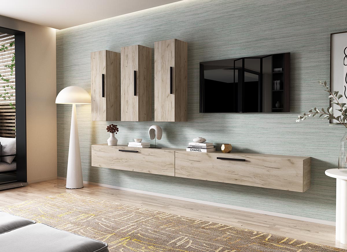 Living Pati 096 – Mobila Sufragerie Stejar Living Pati 096 – Mobila Sufragerie Stejar face parte dintr-o categorie de mobilier modern, contemporan ce imbina designul cu utilitatea. Familia de living Pati are 4 decoruri: stejar, alb, gri si beton . Am realizat peste 100 de configuratii din care puteti alege cu dimensiuni si stiluri diferite. Dulapul de haine este optional si puteti alege unul sau mai multe bucati. Livrare gratuita si rapida, 4-10 zile lucratoare prin flota proprie Suntem producatori de mobilier, fara intermediari Toate piesele de mobilier au o garantie de 2 ani Corpurile sunt construite din PAL melaminat de 16mm. Cantul aplicat este de 0,6 ce le permite muchiilor sa fie placute la atingere . Atentie! Elementele de prindere de tipul dibluri, surub sau horsurub nu sunt incluse deoarce tipul de prindere difera in functie de tipul peretelui pe care urmeaza a se monta mobilierul (beton, caramida, BCA, rigips, lemn etc). Video de prezentare familie Videoul de prezentare poate contine mai multe corpuri de mobilier sau mai putine in comparatie cu produsul de pe aceasta pagina. Scopul acestui video este de a detalia aspectul materialelor, accesoriilor cat si a familiei din care face parte. Dimensiuni Living Pati 096 – Mobila Sufragerie Stejar Imaginea alaturata prezinta compartimentarea pentru mobila de sufragerie Pati. Aceasta configuratie contine urmatoarele corpuri: 3 x Corp 920: L 92 x H 29 x A 26.7 cm 2 x Corp 1380: L 138 x H 29 x A 26.7 cm Optional dulap: L 79.8 x H 185 x A 35 cm Dimensiuni totale living Pati Fara dulap: L 276 x A 26.7 x H 185 cm Cu un dulap: L 355.8 x A 35 x H 185 cm Spatiul de TV: diagonala maxima 139 cm. Toate corpurile se pot pune pe stanga sau pe dreapta in functie de cum doriti. Nu este obligatoriu pozitionarea ca in prezentare. Ele nu sunt prinse unul de celalalt, sunt independente. SCHITA MONTAJ CORP 920 VERTICAL SCHITA MONTAJ CORP 1380 INFERIOR SCHITA MONTAJ dulap 2U Pati Pretul afisat nu include alte accesorii sau obiecte de decor (TV, tablouri, elemente de iluminat, covor etc.) Dimensiunile sunt exprimate in cm si pot oscila intre ± 10 mm. Produsul se livreaza demontat si este insotit de accesorii si instructiuni de asamblare.