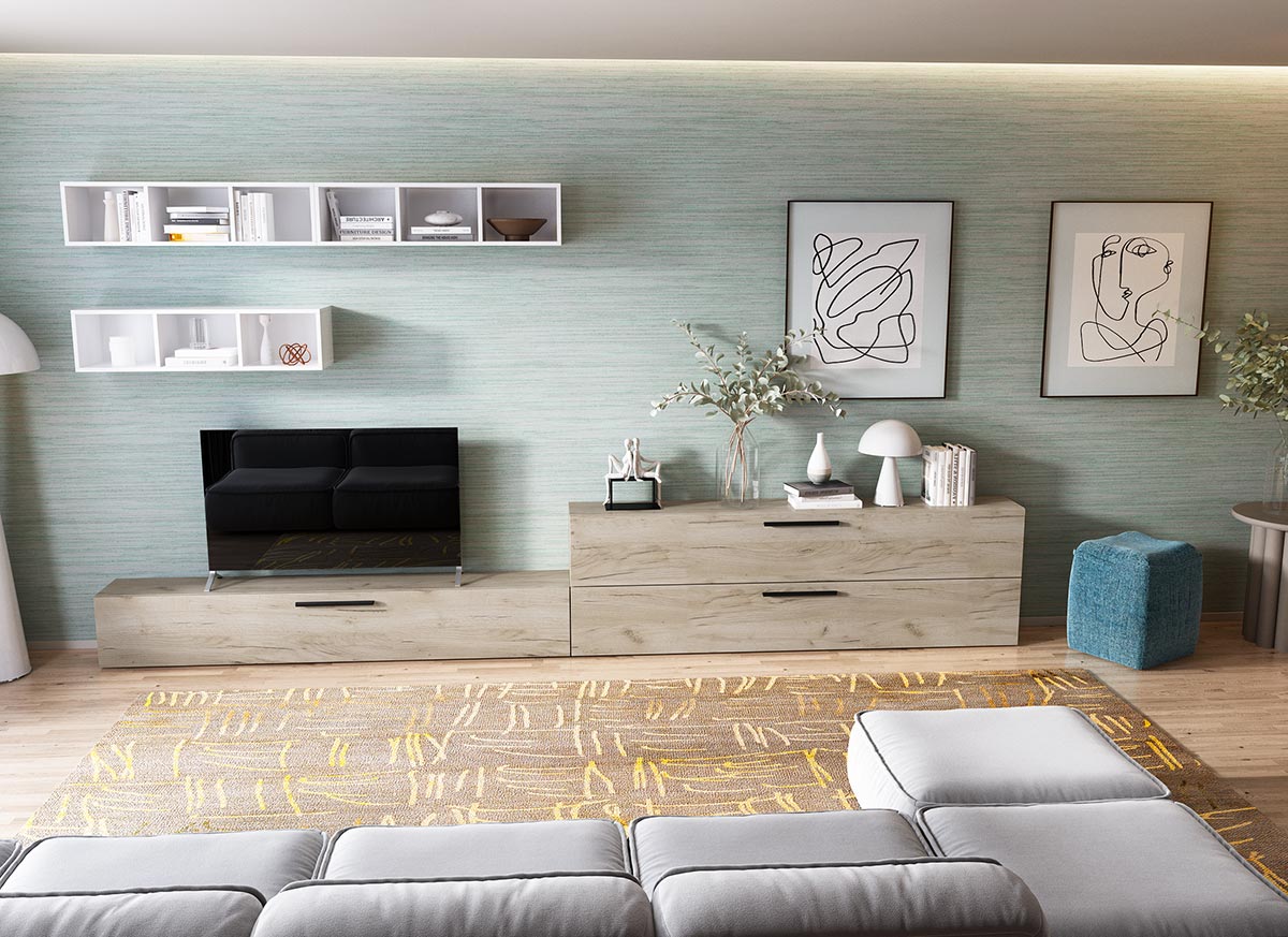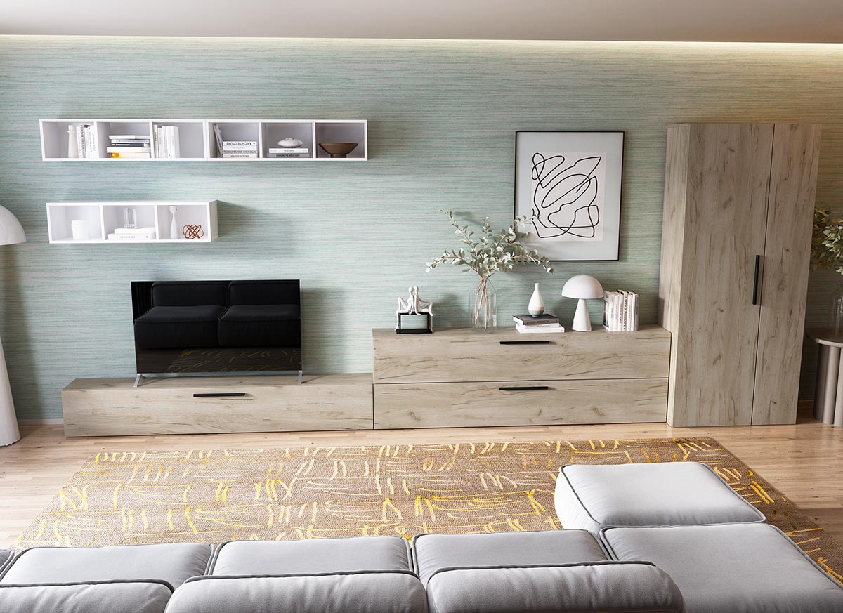 Living Pati 097 – Mobila Sufragerie Alba + Stejar Living Pati 097 – Mobila Sufragerie Alba + Stejar face parte dintr-o categorie de mobilier modern, contemporan ce imbina designul cu utilitatea. Familia de living Pati are 4 decoruri: stejar, alb, gri si beton . Am realizat peste 100 de configuratii din care puteti alege cu dimensiuni si stiluri diferite. Dulapul de haine este optional si puteti alege unul sau mai multe bucati. Livrare gratuita si rapida, 4-10 zile lucratoare prin flota proprie Suntem producatori de mobilier, fara intermediari Toate piesele de mobilier au o garantie de 2 ani Corpurile sunt construite din PAL melaminat de 16mm. Cantul aplicat este de 0,6 ce le permite muchiilor sa fie placute la atingere . Atentie! Elementele de prindere de tipul dibluri, surub sau horsurub nu sunt incluse deoarce tipul de prindere difera in functie de tipul peretelui pe care urmeaza a se monta mobilierul (beton, caramida, BCA, rigips, lemn etc). Video de prezentare familie Videoul de prezentare poate contine mai multe corpuri de mobilier sau mai putine in comparatie cu produsul de pe aceasta pagina. Scopul acestui video este de a detalia aspectul materialelor, accesoriilor cat si a familiei din care face parte. Dimensiuni Living Pati 097 – Mobila Sufragerie Alba + Stejar Imaginea alaturata prezinta compartimentarea pentru mobila de sufragerie Pati. Aceasta configuratie contine urmatoarele corpuri: 3 x Corp decorativ: L 91.5 x H 23.2 x A 25 cm 3 x Corp 1850: L 185 x H 29 x A 26.7 cm Optional dulap: L 79.8 x H 185 x A 35 cm Dimensiuni totale living Pati Fara dulap: L 370 x A 26.7 x H 185 cm Cu un dulap: L 449.8 x A 35 x H 185 cm Spatiul de TV: diagonala maxima 139 cm. Toate corpurile se pot pune pe stanga sau pe dreapta in functie de cum doriti. Nu este obligatoriu pozitionarea ca in prezentare. Ele nu sunt prinse unul de celalalt, sunt independente. SCHITA MONTAJ CORP 1850 INFERIOR SCHITA MONTAJ CORP DECORATIV SCHITA MONTAJ dulap 2U Pati Pretul afisat nu include alte accesorii sau obiecte de decor (TV, tablouri, elemente de iluminat, covor etc.) Dimensiunile sunt exprimate in cm si pot oscila intre ± 10 mm. Produsul se livreaza demontat si este insotit de accesorii si instructiuni de asamblare.