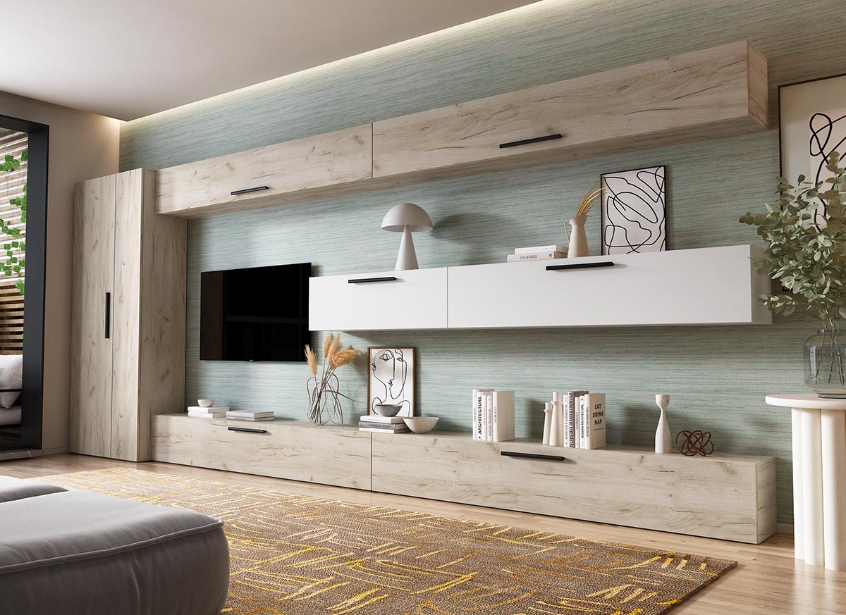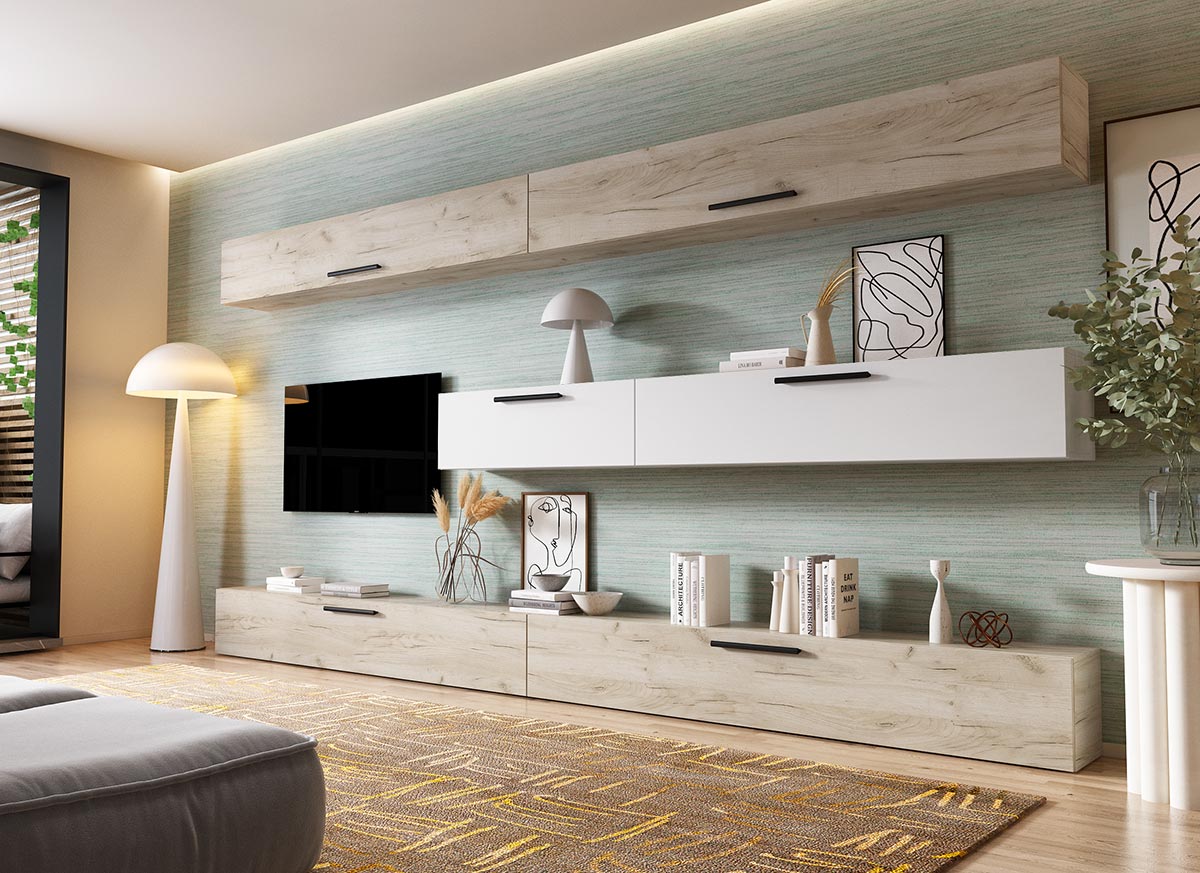 Living Pati 101 – Mobila Sufragerie Stejar + Alb Living Pati 101 – Mobila Sufragerie Stejar + Alb face parte dintr-o categorie de mobilier modern, contemporan ce imbina designul cu utilitatea. Familia de living Pati are 4 decoruri: stejar, alb, gri si beton . Am realizat peste 100 de configuratii din care puteti alege cu dimensiuni si stiluri diferite. Dulapul de haine este optional si puteti alege unul sau mai multe bucati. Livrare gratuita si rapida, 4-10 zile lucratoare prin flota proprie Suntem producatori de mobilier, fara intermediari Toate piesele de mobilier au o garantie de 2 ani Corpurile sunt construite din PAL melaminat de 16mm. Cantul aplicat este de 0,6 ce le permite muchiilor sa fie placute la atingere . Atentie! Elementele de prindere de tipul dibluri, surub sau horsurub nu sunt incluse deoarce tipul de prindere difera in functie de tipul peretelui pe care urmeaza a se monta mobilierul (beton, caramida, BCA, rigips, lemn etc). Video de prezentare familie Videoul de prezentare poate contine mai multe corpuri de mobilier sau mai putine in comparatie cu produsul de pe aceasta pagina. Scopul acestui video este de a detalia aspectul materialelor, accesoriilor cat si a familiei din care face parte. Dimensiuni Living Pati 101 – Mobila Sufragerie Stejar + Alb Imaginea alaturata prezinta compartimentarea pentru mobila de sufragerie Pati. Aceasta configuratie contine urmatoarele corpuri: 1 x Corp 920: L 92 x H 29 x A 26.7 cm 1 x Corp 1380: L 138 x H 29 x A 26.7 cm 4 x Corp 1850: L 185 x H 29 x A 26.7 cm Optional dulap: L 79.8 x H 185 x A 35 cm Dimensiuni totale living Pati Fara dulap: L 370 x A 26.7 x H 185 cm Cu un dulap: L 449.8 x A 35 x H 185 cm Spatiul de TV: diagonala maxima 139 cm. Toate corpurile se pot pune pe stanga sau pe dreapta in functie de cum doriti. Nu este obligatoriu pozitionarea ca in prezentare. Ele nu sunt prinse unul de celalalt, sunt independente. SCHITA MONTAJ CORP 1850 COMODA SCHITA MONTAJ CORP 1380 SCHITA MONTAJ CORP 1850 SUPERIOR SCHITA MONTAJ CORP 920 SCHITA MONTAJ dulap 2U Pati Pretul afisat nu include alte accesorii sau obiecte de decor (TV, tablouri, elemente de iluminat, covor etc.) Dimensiunile sunt exprimate in cm si pot oscila intre ± 10 mm. Produsul se livreaza demontat si este insotit de accesorii si instructiuni de asamblare.