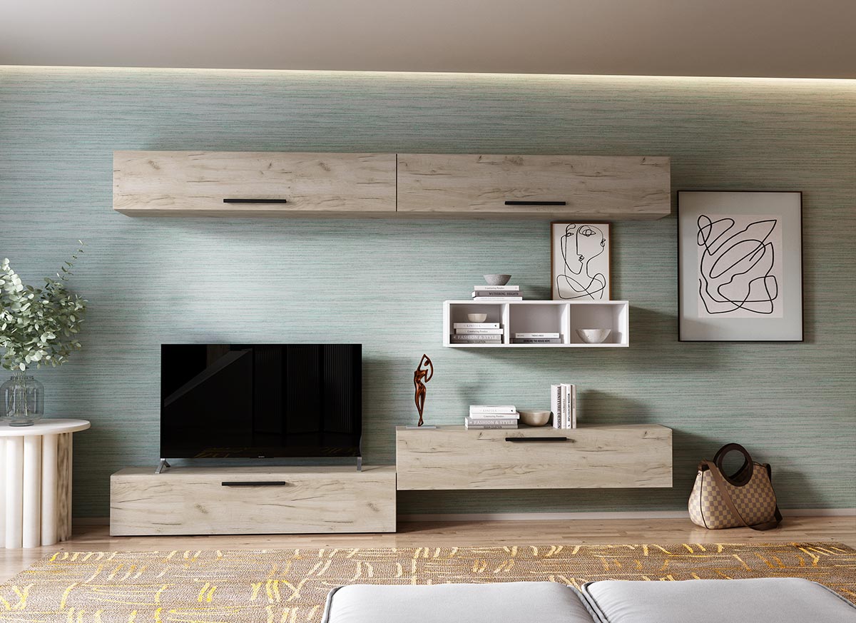 Living Pati 103 – Mobila Sufragerie Stejar Living Pati 103 – Mobila Sufragerie Stejar face parte dintr-o categorie de mobilier modern, contemporan ce imbina designul cu utilitatea. Familia de living Pati are 4 decoruri: stejar, alb, gri si beton . Am realizat peste 100 de configuratii din care puteti alege cu dimensiuni si stiluri diferite. Dulapul de haine este optional si puteti alege unul sau mai multe bucati. Livrare gratuita si rapida, 4-10 zile lucratoare prin flota proprie Suntem producatori de mobilier, fara intermediari Toate piesele de mobilier au o garantie de 2 ani Corpurile sunt construite din PAL melaminat de 16mm. Cantul aplicat este de 0,6 ce le permite muchiilor sa fie placute la atingere . Atentie! Elementele de prindere de tipul dibluri, surub sau horsurub nu sunt incluse deoarce tipul de prindere difera in functie de tipul peretelui pe care urmeaza a se monta mobilierul (beton, caramida, BCA, rigips, lemn etc). Video de prezentare familie Videoul de prezentare poate contine mai multe corpuri de mobilier sau mai putine in comparatie cu produsul de pe aceasta pagina. Scopul acestui video este de a detalia aspectul materialelor, accesoriilor cat si a familiei din care face parte. Dimensiuni Living Pati 103 – Mobila Sufragerie Stejar Imaginea alaturata prezinta compartimentarea pentru mobila de sufragerie Pati. Aceasta configuratie contine urmatoarele corpuri: 4 x Corp 1380: L 138 x H 29 x A 26.7 cm 1 x Corp decorativ: L 91.5 x H 23.2 x A 25 cm Optional dulap: L 79.8 x H 185 x A 35 cm Dimensiuni totale living Pati Fara dulap: L 276 x A 26.7 x H 185 cm Cu un dulap: L 355.8 x A 35 x H 185 cm Spatiul de TV: diagonala maxima 139 cm. Toate corpurile se pot pune pe stanga sau pe dreapta in functie de cum doriti. Nu este obligatoriu pozitionarea ca in prezentare. Ele nu sunt prinse unul de celalalt, sunt independente. SCHITA MONTAJ corp 1380 comoda / inferior SCHITA MONTAJ CORP 1380 SUPERIOR SCHITA MONTAJ CORP DECORATIV SCHITA MONTAJ dulap 2U Pati Pretul afisat nu include alte accesorii sau obiecte de decor (TV, tablouri, elemente de iluminat, covor etc.) Dimensiunile sunt exprimate in cm si pot oscila intre ± 10 mm. Produsul se livreaza demontat si este insotit de accesorii si instructiuni de asamblare.