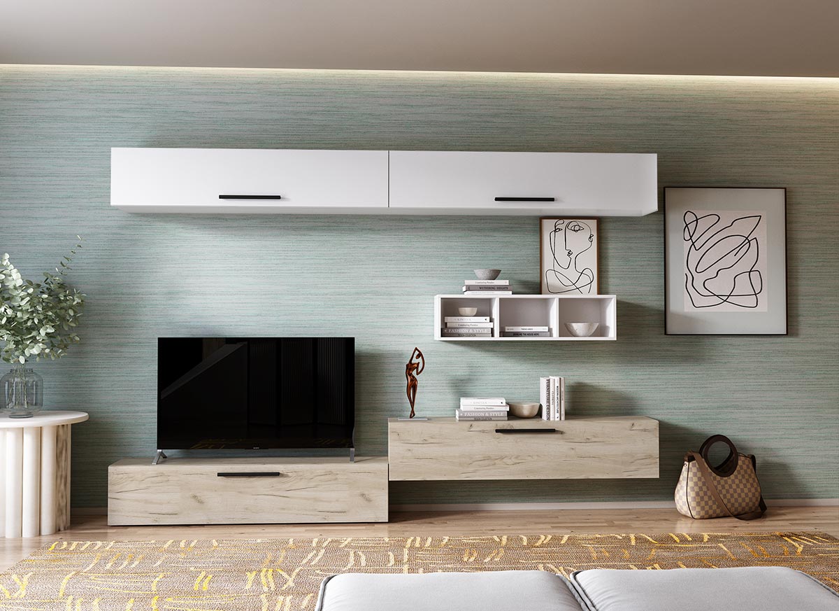 Living Pati 104 – Mobila Sufragerie Stejar + Alb Living Pati 104 – Mobila Sufragerie Stejar + Alb face parte dintr-o categorie de mobilier modern, contemporan ce imbina designul cu utilitatea. Familia de living Pati are 4 decoruri: stejar, alb, gri si beton . Am realizat peste 100 de configuratii din care puteti alege cu dimensiuni si stiluri diferite. Dulapul de haine este optional si puteti alege unul sau mai multe bucati. Livrare gratuita si rapida, 4-10 zile lucratoare prin flota proprie Suntem producatori de mobilier, fara intermediari Toate piesele de mobilier au o garantie de 2 ani Corpurile sunt construite din PAL melaminat de 16mm. Cantul aplicat este de 0,6 ce le permite muchiilor sa fie placute la atingere . Atentie! Elementele de prindere de tipul dibluri, surub sau horsurub nu sunt incluse deoarce tipul de prindere difera in functie de tipul peretelui pe care urmeaza a se monta mobilierul (beton, caramida, BCA, rigips, lemn etc). Video de prezentare familie Videoul de prezentare poate contine mai multe corpuri de mobilier sau mai putine in comparatie cu produsul de pe aceasta pagina. Scopul acestui video este de a detalia aspectul materialelor, accesoriilor cat si a familiei din care face parte. Dimensiuni Living Pati 104 – Mobila Sufragerie Stejar + Alb Imaginea alaturata prezinta compartimentarea pentru mobila de sufragerie Pati. Aceasta configuratie contine urmatoarele corpuri: 4 x Corp 1380: L 138 x H 29 x A 26.7 cm 1 x Corp decorativ: L 91.5 x H 23.2 x A 25 cm Optional dulap: L 79.8 x H 185 x A 35 cm Dimensiuni totale living Pati Fara dulap: L 276 x A 26.7 x H 185 cm Cu un dulap: L 355.8 x A 35 x H 185 cm Spatiul de TV: diagonala maxima 139 cm. Toate corpurile se pot pune pe stanga sau pe dreapta in functie de cum doriti. Nu este obligatoriu pozitionarea ca in prezentare. Ele nu sunt prinse unul de celalalt, sunt independente. SCHITA MONTAJ corp 1380 comoda / inferior SCHITA MONTAJ CORP 1380 SUPERIOR SCHITA MONTAJ CORP DECORATIV SCHITA MONTAJ dulap 2U Pati Pretul afisat nu include alte accesorii sau obiecte de decor (TV, tablouri, elemente de iluminat, covor etc.) Dimensiunile sunt exprimate in cm si pot oscila intre ± 10 mm. Produsul se livreaza demontat si este insotit de accesorii si instructiuni de asamblare.