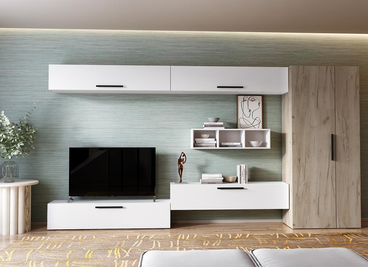 Living Pati 105 – Mobila Sufragerie Alba Living Pati 105 – Mobila Sufragerie Alba face parte dintr-o categorie de mobilier modern, contemporan ce imbina designul cu utilitatea. Familia de living Pati are 4 decoruri: stejar, alb, gri si beton . Am realizat peste 100 de configuratii din care puteti alege cu dimensiuni si stiluri diferite. Dulapul de haine este optional si puteti alege unul sau mai multe bucati. Livrare gratuita si rapida, 4-10 zile lucratoare prin flota proprie Suntem producatori de mobilier, fara intermediari Toate piesele de mobilier au o garantie de 2 ani Corpurile sunt construite din PAL melaminat de 16mm. Cantul aplicat este de 0,6 ce le permite muchiilor sa fie placute la atingere . Atentie! Elementele de prindere de tipul dibluri, surub sau horsurub nu sunt incluse deoarce tipul de prindere difera in functie de tipul peretelui pe care urmeaza a se monta mobilierul (beton, caramida, BCA, rigips, lemn etc). Video de prezentare familie Videoul de prezentare poate contine alte nuante, mai multe sau mai putine corpuri de mobilier in comparatie cu produsul de pe aceasta pagina. Scopul acestui video este de a detalia aspectul materialelor, accesoriilor cat si a familiei din care face parte. Dimensiuni Living Pati 105 – Mobila Sufragerie Alba Imaginea alaturata prezinta compartimentarea pentru mobila de sufragerie Pati. Aceasta configuratie contine urmatoarele corpuri: 4 x Corp 1380: L 138 x H 29 x A 26.7 cm 1 x Corp decorativ: L 91.5 x H 23.2 x A 25 cm Optional dulap: L 79.8 x H 185 x A 35 cm Dimensiuni totale living Pati Fara dulap: L 276 x A 26.7 x H 185 cm Cu un dulap: L 355.8 x A 35 x H 185 cm Spatiul de TV: diagonala maxima 139 cm. Toate corpurile se pot pune pe stanga sau pe dreapta in functie de cum doriti. Nu este obligatoriu pozitionarea ca in prezentare. Ele nu sunt prinse unul de celalalt, sunt independente. SCHITA MONTAJ corp 1380 comoda / inferior SCHITA MONTAJ CORP 1380 SUPERIOR SCHITA MONTAJ CORP DECORATIV SCHITA MONTAJ dulap 2U Pati Pretul afisat nu include alte accesorii sau obiecte de decor (TV, tablouri, elemente de iluminat, covor etc.) Dimensiunile sunt exprimate in cm si pot oscila intre ± 10 mm. Produsul se livreaza demontat si este insotit de accesorii si instructiuni de asamblare.