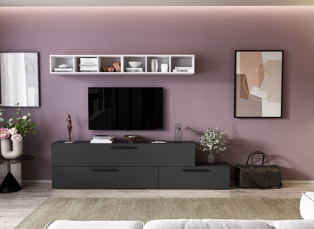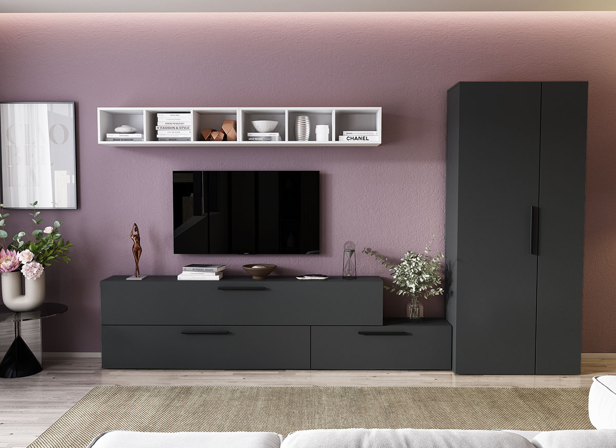 Living Pati 106 – Mobila Sufragerie Gri + Alb Living Pati 106 – Mobila Sufragerie Gri + Alb face parte dintr-o categorie de mobilier modern, contemporan ce imbina designul cu utilitatea. Familia de living Pati are 4 decoruri: stejar, alb, gri si beton . Am realizat peste 100 de configuratii din care puteti alege cu dimensiuni si stiluri diferite. Dulapul de haine este optional si puteti alege unul sau mai multe bucati. Livrare gratuita si rapida, 4-10 zile lucratoare prin flota proprie Suntem producatori de mobilier, fara intermediari Toate piesele de mobilier au o garantie de 2 ani Corpurile sunt construite din PAL melaminat de 16mm. Cantul aplicat este de 0,6 ce le permite muchiilor sa fie placute la atingere . Atentie! Elementele de prindere de tipul dibluri, surub sau horsurub nu sunt incluse deoarce tipul de prindere difera in functie de tipul peretelui pe care urmeaza a se monta mobilierul (beton, caramida, BCA, rigips, lemn etc). Video de prezentare familie Videoul de prezentare poate contine mai multe corpuri de mobilier sau mai putine in comparatie cu produsul de pe aceasta pagina. Scopul acestui video este de a detalia aspectul materialelor, accesoriilor cat si a familiei din care face parte. Dimensiuni Living Pati 106 – Mobila Sufragerie Gri + Alb Imaginea alaturata prezinta compartimentarea pentru mobila de sufragerie Pati. Aceasta configuratie contine urmatoarele corpuri: 1 x Corp 920: L 92 x H 29 x A 26.7 cm 1 x Corp 1380: L 138 x H 29 x A 26.7 cm 1 x Corp 1850 : L 185 x H 29 x A 26.7 cm 2 x Corp decorativ: L 91.5 x H 23.2 x A 25 cm Optional dulap: L 79.8 x H 185 x A 35 cm Dimensiuni totale living Pati Fara dulap: L 230 x A 26.7 x H 170 cm Cu un dulap: L 309.8 x A 35 x H 185 cm Spatiul de TV: diagonala maxima 139 cm. Toate corpurile se pot pune pe stanga sau pe dreapta in functie de cum doriti. Nu este obligatoriu pozitionarea ca in prezentare. Ele nu sunt prinse unul de celalalt, sunt independente. SCHITA MONTAJ CORP DECORATIV SCHITA MONTAJ corp 1850 INFERIOR SCHITA MONTAJ CORP 1380 COMODA SCHITA MONTAJ CORP 920 COMODA SCHITA MONTAJ dulap 2U Pati Pretul afisat nu include alte accesorii sau obiecte de decor (TV, tablouri, elemente de iluminat, covor etc.) Dimensiunile sunt exprimate in cm si pot oscila intre ± 10 mm. Produsul se livreaza demontat si este insotit de accesorii si instructiuni de asamblare.