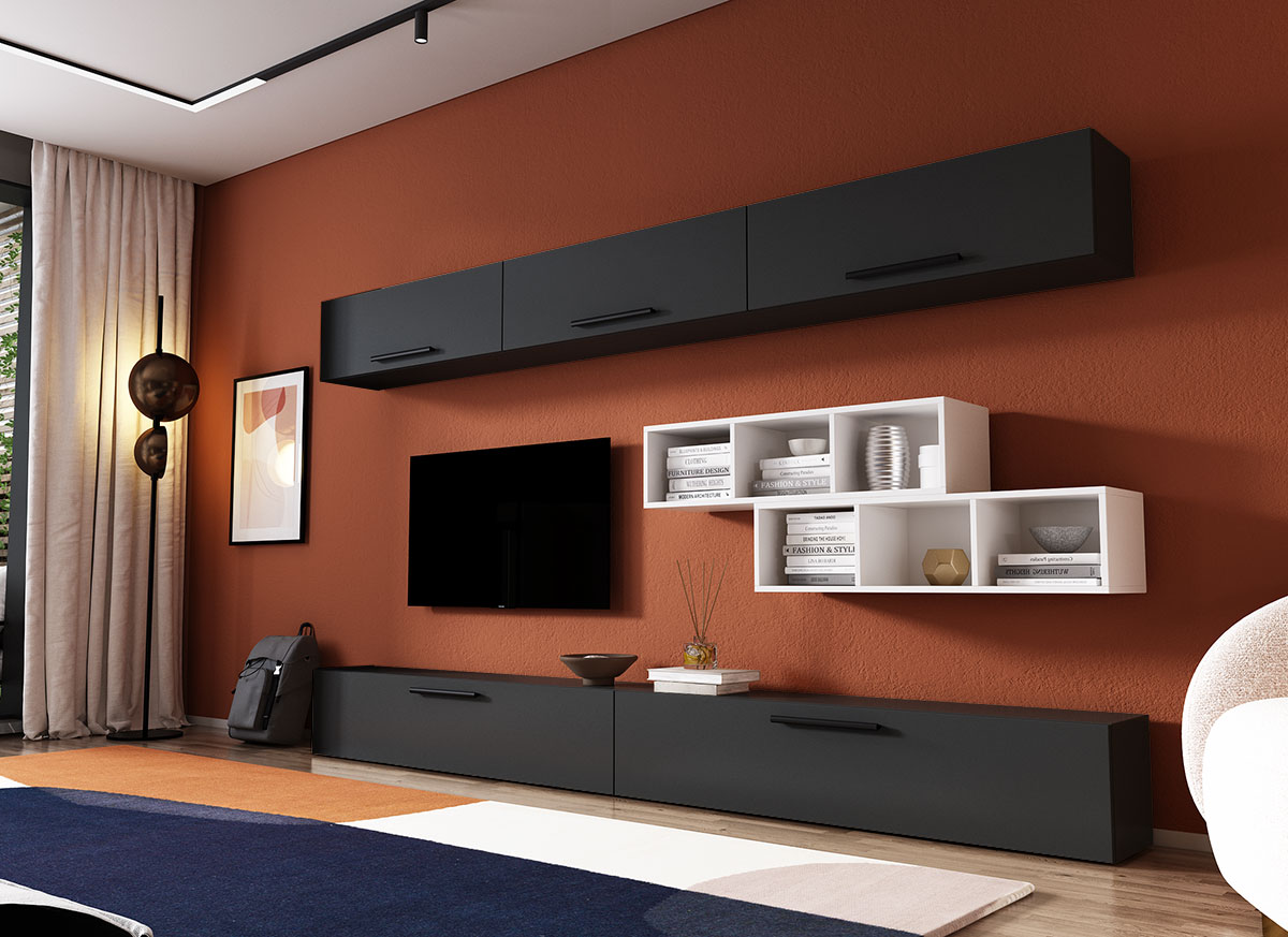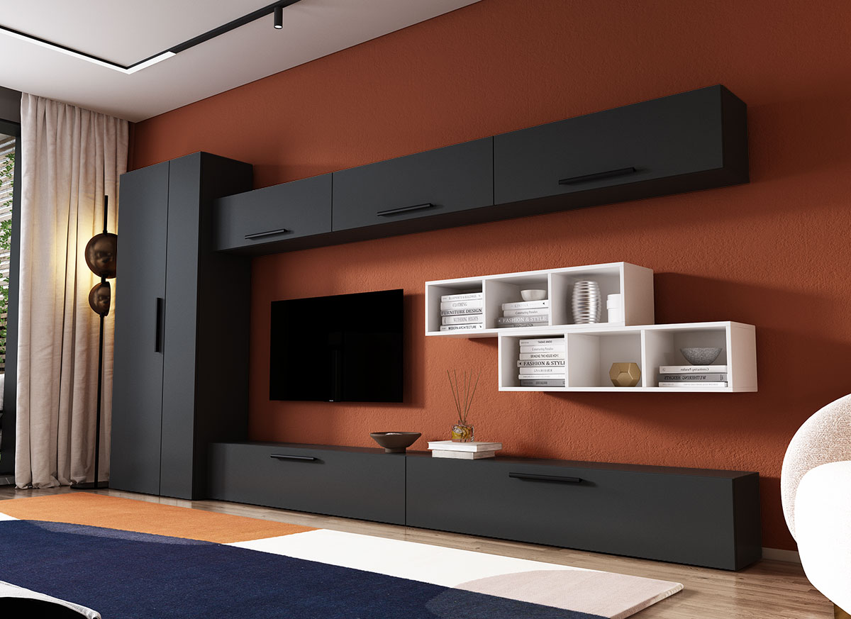 Living Pati 124 – Mobila Sufragerie Gri Antracit + Alba Living Pati 124 – Mobila Sufragerie Gri Antracit + Alba face parte dintr-o categorie de mobilier modern, contemporan ce imbina designul cu utilitatea. Familia de living Pati are 4 decoruri: stejar, alb, gri si beton . Am realizat peste 100 de configuratii din care puteti alege cu dimensiuni si stiluri diferite. Dulapul de haine este optional si puteti alege unul sau mai multe bucati. Livrare gratuita si rapida, 4-10 zile lucratoare prin flota proprie Suntem producatori de mobilier, fara intermediari Toate piesele de mobilier au o garantie de 2 ani Corpurile sunt construite din PAL melaminat de 16mm. Cantul aplicat este de 0,6 ce le permite muchiilor sa fie placute la atingere . Atentie! Elementele de prindere de tipul dibluri, surub sau horsurub nu sunt incluse deoarce tipul de prindere difera in functie de tipul peretelui pe care urmeaza a se monta mobilierul (beton, caramida, BCA, rigips, lemn etc). Video de prezentare familie Videoul de prezentare poate contine mai multe corpuri de mobilier sau mai putine in comparatie cu produsul de pe aceasta pagina. Scopul acestui video este de a detalia aspectul materialelor, accesoriilor cat si a familiei din care face parte. Dimensiuni Living Pati 124 – Mobila Sufragerie Gri Antracit + Alba Imaginea alaturata prezinta compartimentarea pentru mobila de sufragerie Pati. Aceasta configuratie contine urmatoarele corpuri: 2 x Corp 1380: L 138 x H 29 x A 26.7 cm 3 x Corp 920: L 92 x H 29 x A 26.7 cm 2 x Corp decorativ: L 91.5 x H 23.2 x A 25 cm Optional dulap: L 79.8 x H 185 x A 35 cm Dimensiuni totale living Pati Fara dulap: L 276 cm x A 26.7 x H 170 cm Cu un dulap: L 355.8 cm x A 26.7 x H 185 cm Spatiul de TV: diagonala maxima 139 cm. Toate corpurile se pot pune pe stanga sau pe dreapta in functie de cum doriti. Nu este obligatoriu pozitionarea ca in prezentare. Ele nu sunt prinse unul de celalalt, sunt independente. SCHITA MONTAJ corp 1380 comoda SCHITA MONTAJ CORP 920 superior SCHITA MONTAJ CORP DECORATIV SCHITA MONTAJ dulap 2U Pati Pretul afisat nu include alte accesorii sau obiecte de decor (TV, tablouri, elemente de iluminat, covor etc.) Dimensiunile sunt exprimate in cm si pot oscila intre ± 10 mm. Produsul se livreaza demontat si este insotit de accesorii si instructiuni de asamblare.