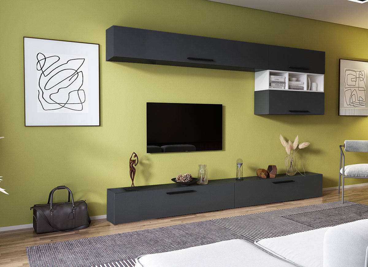 Living Pati 134 – Mobila Sufragerie Gri Antracit + Alb Living Pati 134 – Mobila Sufragerie Gri Antracit + Alb face parte dintr-o categorie de mobilier modern, contemporan ce imbina designul cu utilitatea. Familia de living Pati are 4 decoruri: stejar, alb, gri si beton . Am realizat peste 100 de configuratii din care puteti alege cu dimensiuni si stiluri diferite. Dulapul de haine este optional si puteti alege unul sau mai multe bucati. Livrare gratuita si rapida, 4-10 zile lucratoare prin flota proprie Suntem producatori de mobilier, fara intermediari Toate piesele de mobilier au o garantie de 2 ani Corpurile sunt construite din PAL melaminat de 16mm. Cantul aplicat este de 0,6 ce le permite muchiilor sa fie placute la atingere . Atentie! Elementele de prindere de tipul dibluri, surub sau horsurub nu sunt incluse deoarce tipul de prindere difera in functie de tipul peretelui pe care urmeaza a se monta mobilierul (beton, caramida, BCA, rigips, lemn etc). Video de prezentare familie Videoul de prezentare poate contine mai multe corpuri de mobilier sau mai putine in comparatie cu produsul de pe aceasta pagina. Scopul acestui video este de a detalia aspectul materialelor, accesoriilor cat si a familiei din care face parte. Dimensiuni Living Pati 134 – Mobila Sufragerie Gri Antracit + Alb Imaginea alaturata prezinta compartimentarea pentru mobila de sufragerie Pati. Aceasta configuratie contine urmatoarele corpuri: 1 x Corp 1850: L 185 x H 29 x A 26.7 cm 2 x Corp 920: L 92 x H 29 x A 26.7 cm 1 x Corp decorativ: L 91.5 x H 23.2 x A 25 cm 2 x Corp 1380: L 138 x H 29 x A 26.7 cm Optional dulap: L 79.8 x H 185 x A 35 cm Dimensiuni totale living Pati Fara dulap: L 276 x A 26.7 x H 170 cm Cu un dulap: L 355.8 x A 35 x H 185 cm Spatiul de TV: diagonala maxima 139 cm. Toate corpurile se pot pune pe stanga sau pe dreapta in functie de cum doriti. Nu este obligatoriu pozitionarea ca in prezentare. Ele nu sunt prinse unul de celalalt, sunt independente. SCHITA MONTAJ CORP DECORATIV SCHITA MONTAJ CORP 1380 COMODA SCHITA MONTAJ CORP 1850 SUPERIOR SCHITA MONTAJ CORP 920 SUPERIOR SCHITA MONTAJ dulap 2U Pati Pretul afisat nu include alte accesorii sau obiecte de decor (TV, tablouri, elemente de iluminat, covor etc.) Dimensiunile sunt exprimate in cm si pot oscila intre ± 10 mm. Produsul se livreaza demontat si este insotit de accesorii si instructiuni de asamblare.