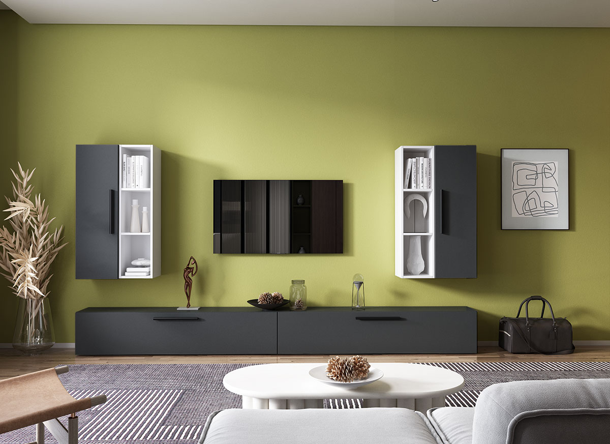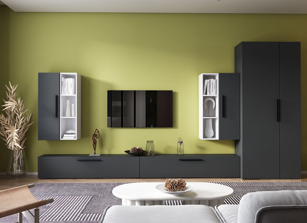 Living Pati 144 – Mobila Sufragerie Gri Antracit + Alb Living Pati 144 – Mobila Sufragerie Gri Antracit + Alb face parte dintr-o categorie de mobilier modern, contemporan ce imbina designul cu utilitatea. Familia de living Pati are 4 decoruri: stejar, alb, gri si beton . Am realizat peste 100 de configuratii din care puteti alege cu dimensiuni si stiluri diferite. Dulapul de haine este optional si puteti alege unul sau mai multe bucati. Livrare gratuita si rapida, 4-10 zile lucratoare prin flota proprie Suntem producatori de mobilier, fara intermediari Toate piesele de mobilier au o garantie de 2 ani Corpurile sunt construite din PAL melaminat de 16mm. Cantul aplicat este de 0,6 ce le permite muchiilor sa fie placute la atingere . Atentie! Elementele de prindere de tipul dibluri, surub sau horsurub nu sunt incluse deoarce tipul de prindere difera in functie de tipul peretelui pe care urmeaza a se monta mobilierul (beton, caramida, BCA, rigips, lemn etc). Video de prezentare familie Videoul de prezentare poate contine mai multe corpuri de mobilier sau mai putine in comparatie cu produsul de pe aceasta pagina. Scopul acestui video este de a detalia aspectul materialelor, accesoriilor cat si a familiei din care face parte. Dimensiuni Living Pati 144 – Mobila Sufragerie Gri Antracit + Alb Imaginea alaturata prezinta compartimentarea pentru mobila de sufragerie Pati. Aceasta configuratie contine urmatoarele corpuri: 2 x Corp 920: L 92 x H 29 x A 26.7 cm 2 x Corp 1380: L 138 x H 29 x A 26.7 cm 2 x Corp decorativ: L 91.5 x H 23.2 x A 25 cm Optional dulap: L 79.8 x H 185 x A 35 cm Dimensiuni totale living Pati Fara dulap: L 276 x A 26.7 x H 160 cm Cu un dulap: L 355.8 x A 35 x H 185 cm Spatiul de TV: diagonala maxima 139 cm. Toate corpurile se pot pune pe stanga sau pe dreapta in functie de cum doriti. Nu este obligatoriu pozitionarea ca in prezentare. Ele nu sunt prinse unul de celalalt, sunt independente. SCHITA MONTAJ CORP 920 VERTICAL SCHITA MONTAJ CORP 1380 COMODA SCHITA MONTAJ CORP DECORATIV SCHITA MONTAJ dulap 2U Pati Pretul afisat nu include alte accesorii sau obiecte de decor (TV, tablouri, elemente de iluminat, covor etc.) Dimensiunile sunt exprimate in cm si pot oscila intre ± 10 mm. Produsul se livreaza demontat si este insotit de accesorii si instructiuni de asamblare.